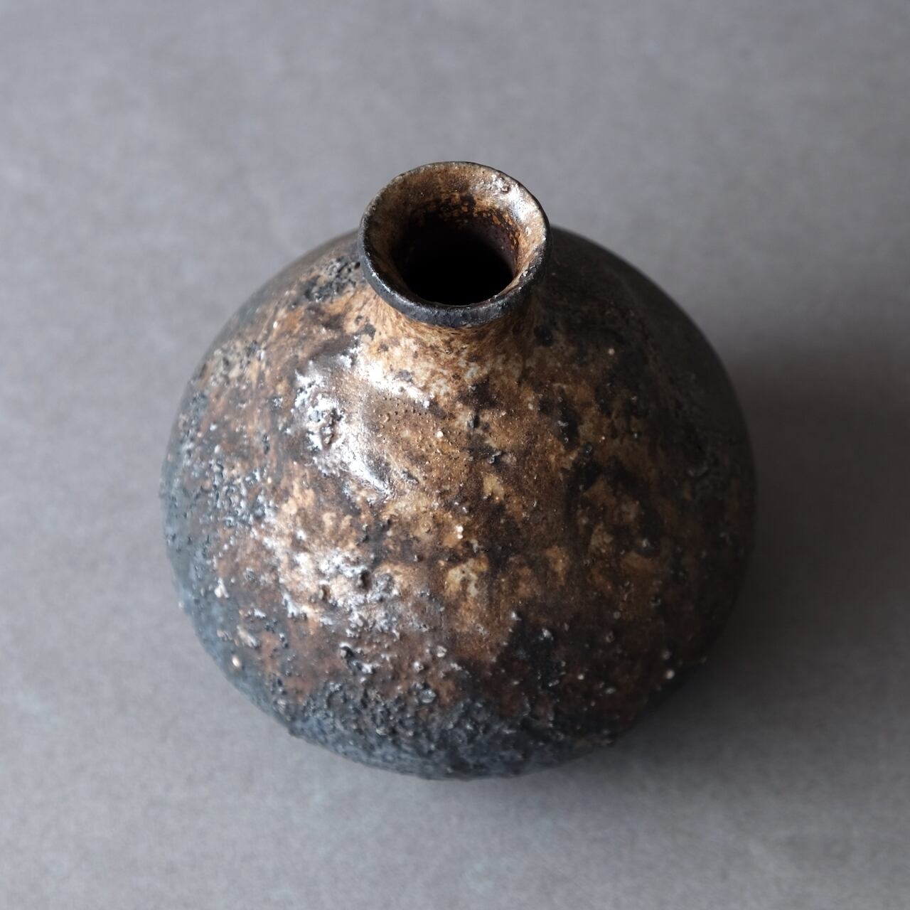 ゆらゆらと揺れる徳利です。焚口の近くに転がして焼成することにより、燃料の松割木の灰や炭の影響を受け、多彩な景色となっています。