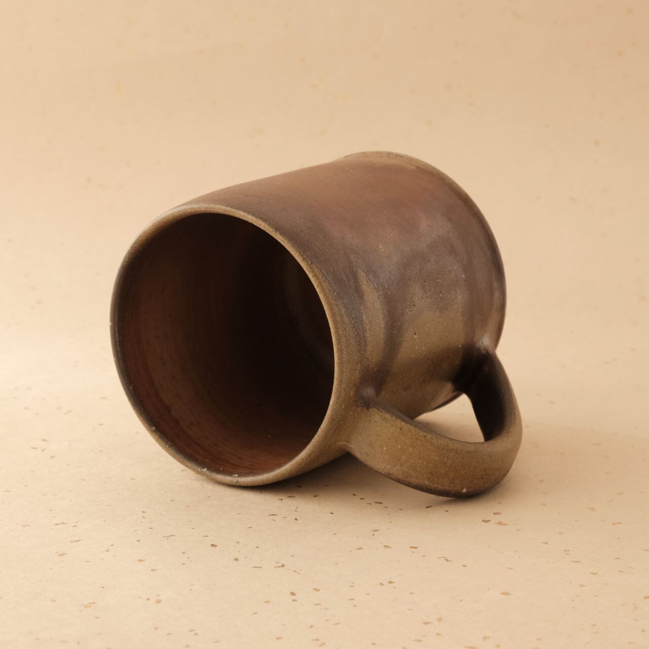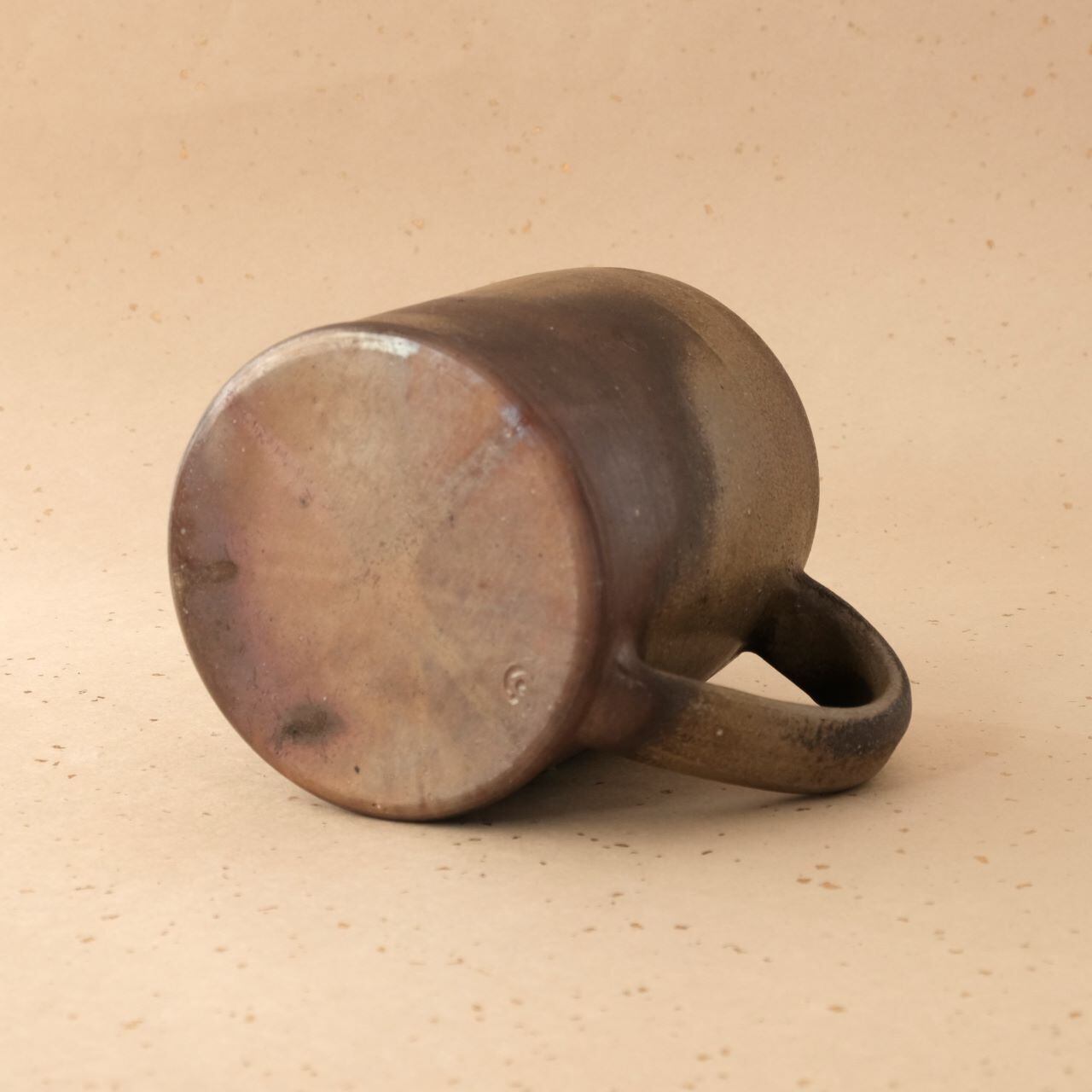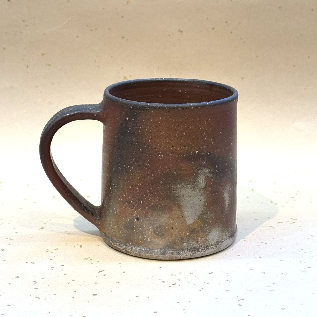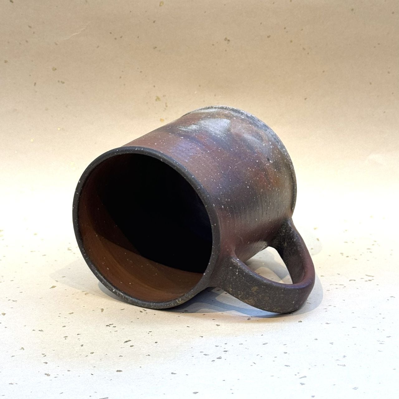 大ぶりなマグです。ビールを飲むジョッキとしてもご使用いただけます。うつわの側面には、木炭のガスの作用により、青味がかった色合いが現れています。