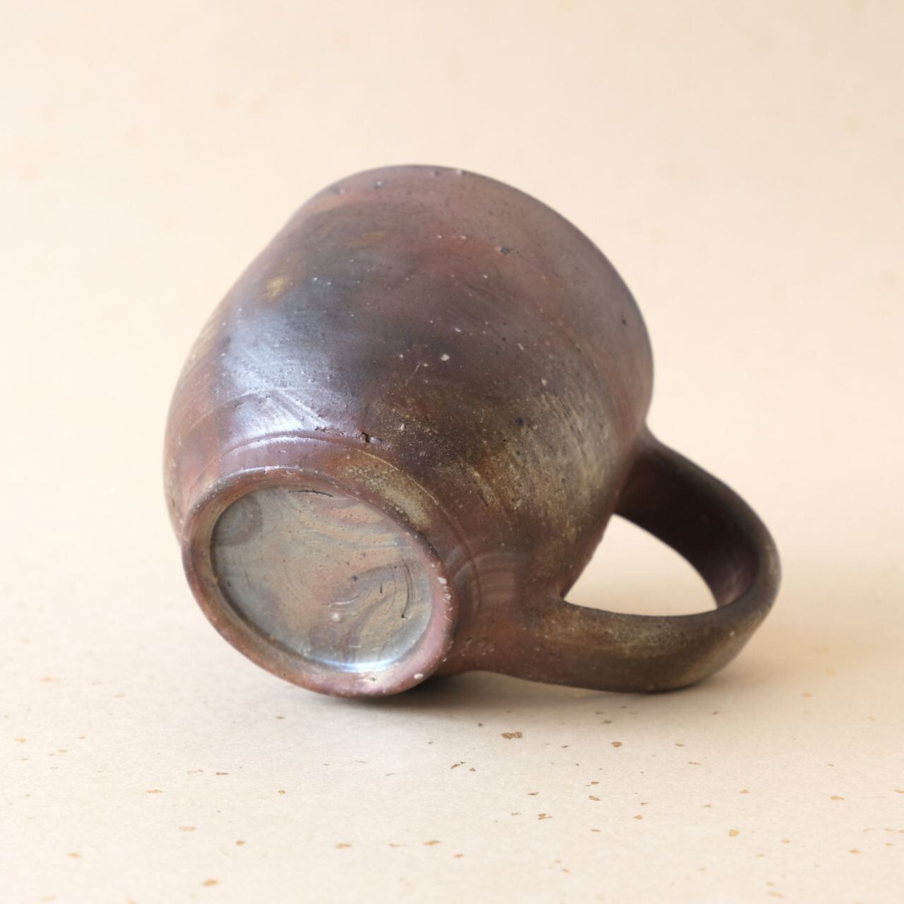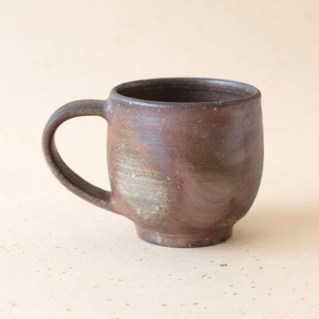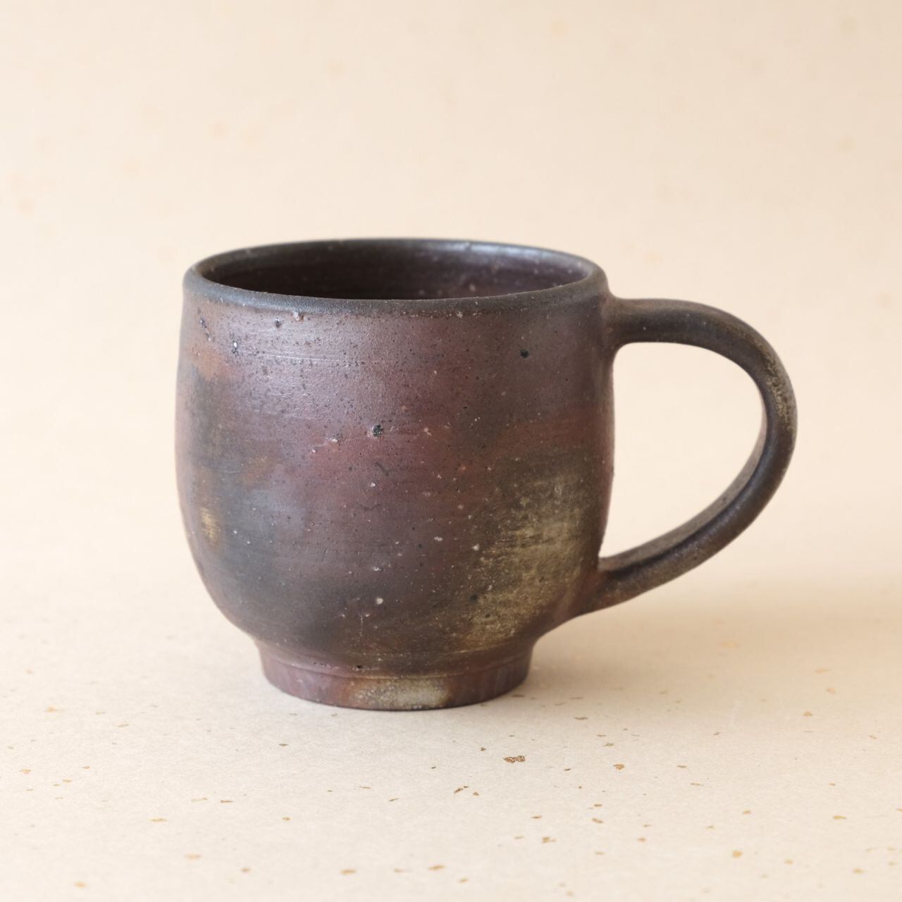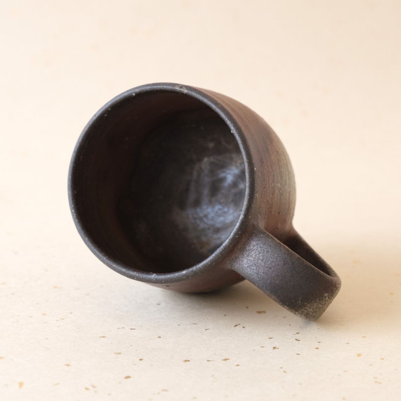標準サイズのマグです。普段使いとしてもさまざまな用途でご使用いただけます。うつわの側面には、木炭のガスの作用により、青味がかった色合いが現れています。