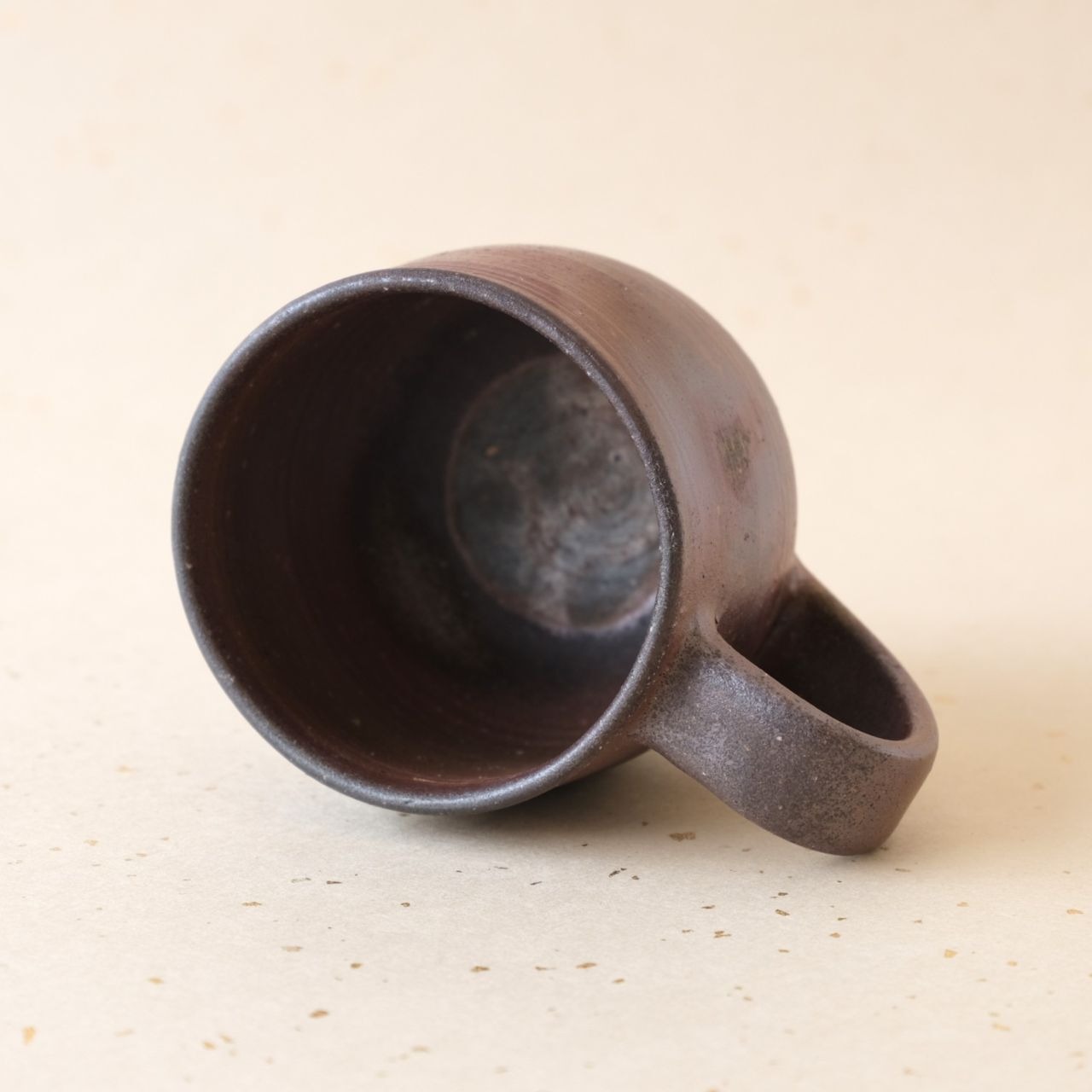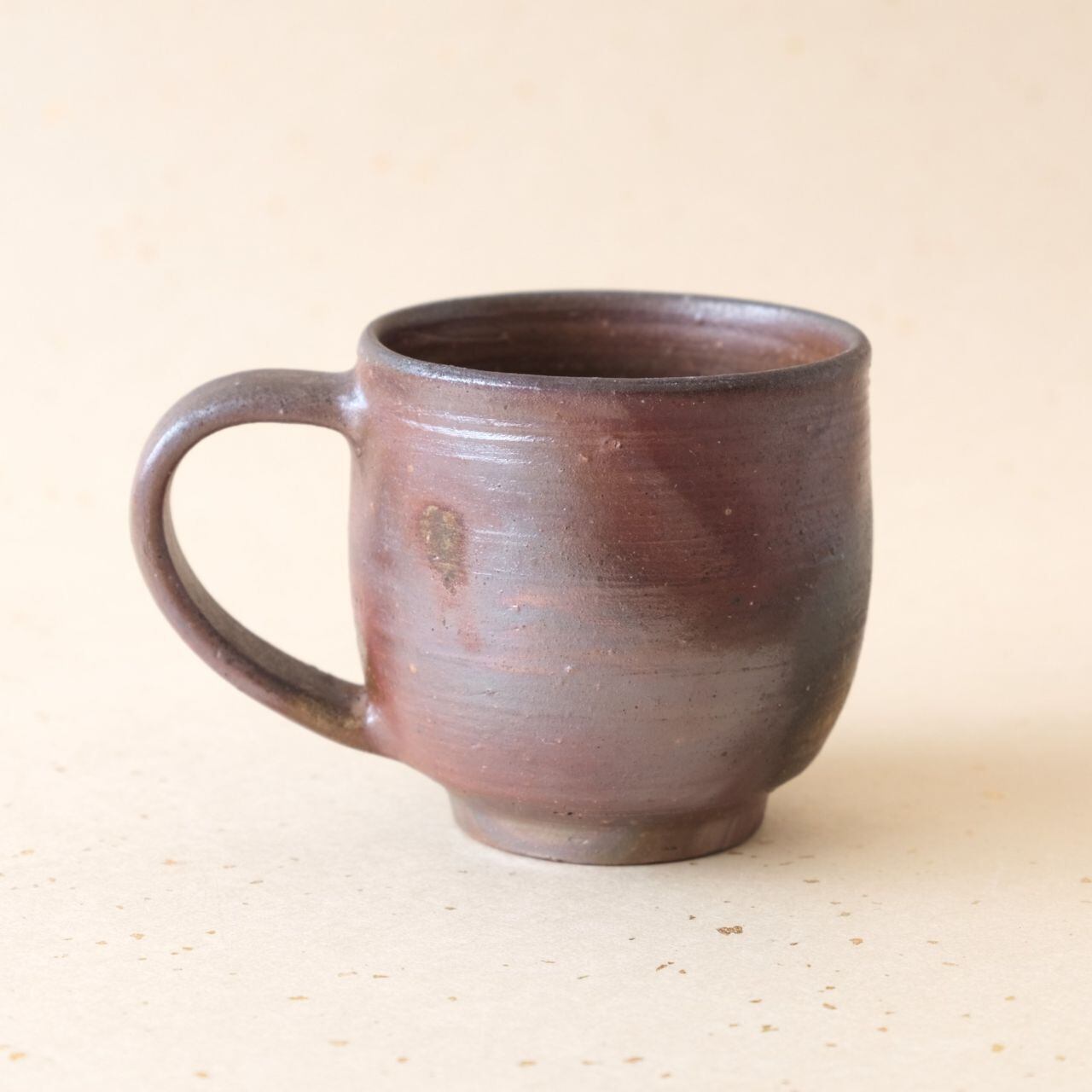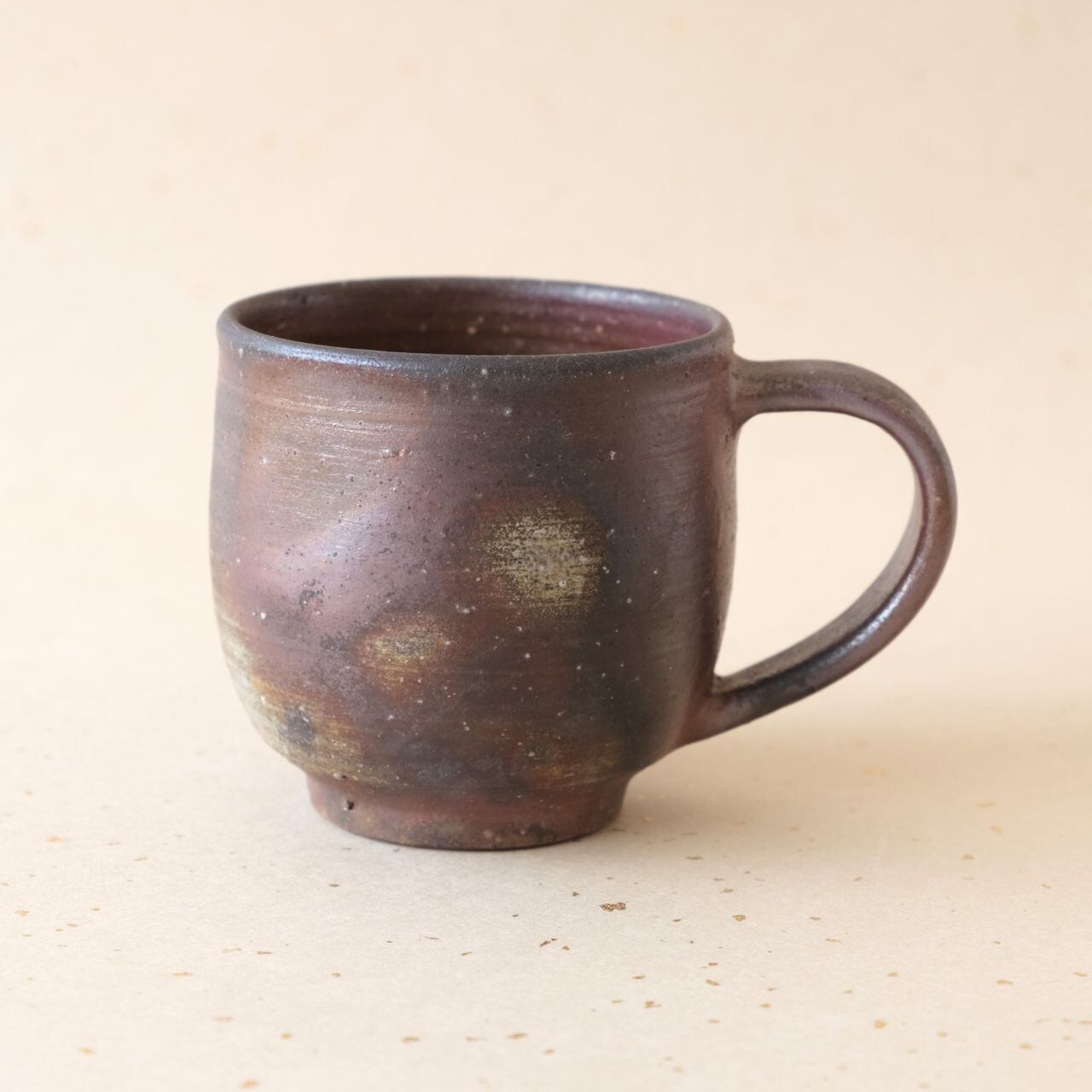 標準サイズのマグです。普段使いとしてもさまざまな用途でご使用いただけます。うつわの側面には、木炭のガスの作用により、青味がかった色合いが現れています。