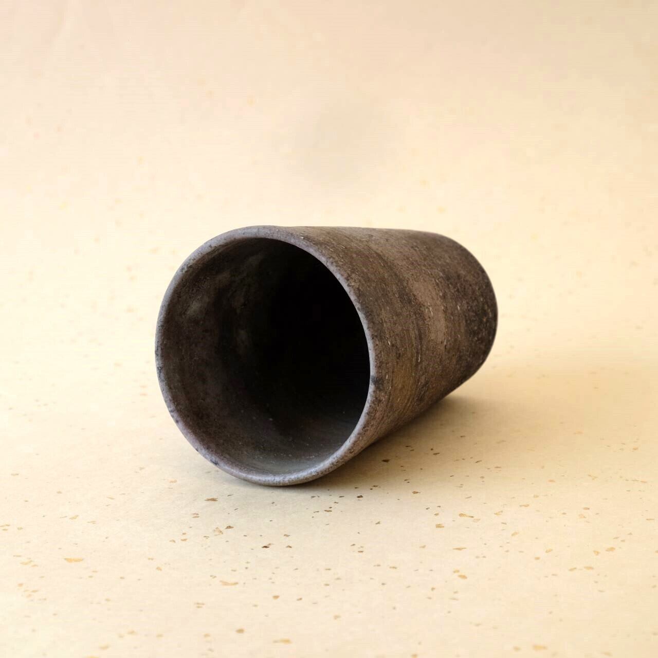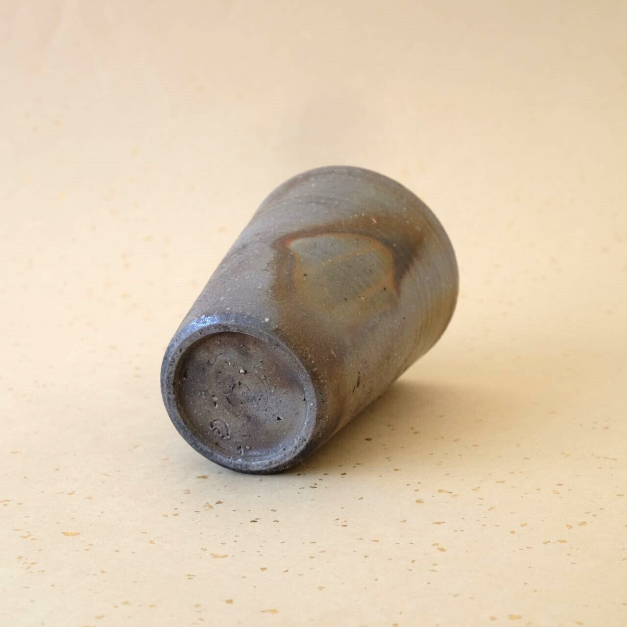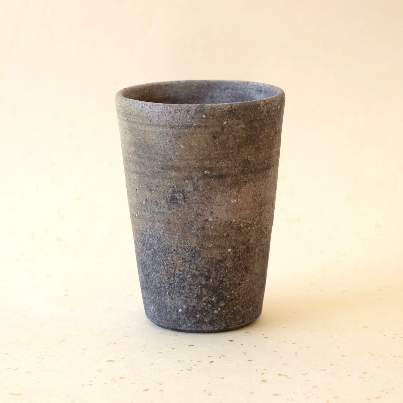 筒形のビアマグです。ビールが美味しくいただけると言われています。焚き口の近くで焼成することにより、灰や炭の影響を受け、多彩な変化が生まれています。