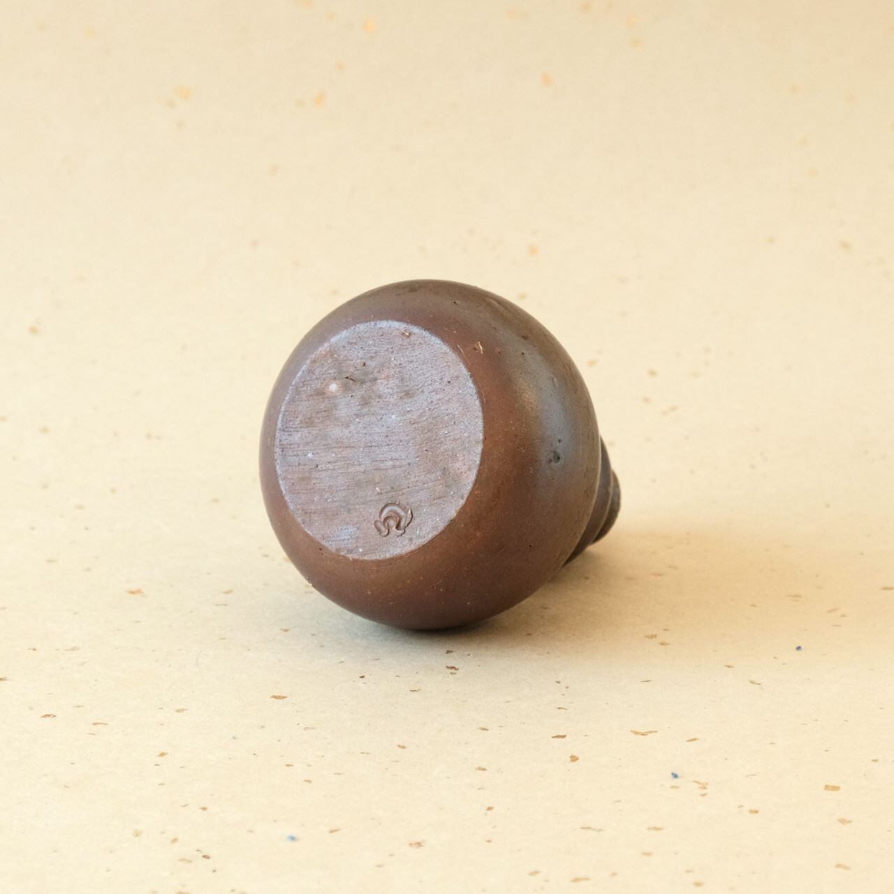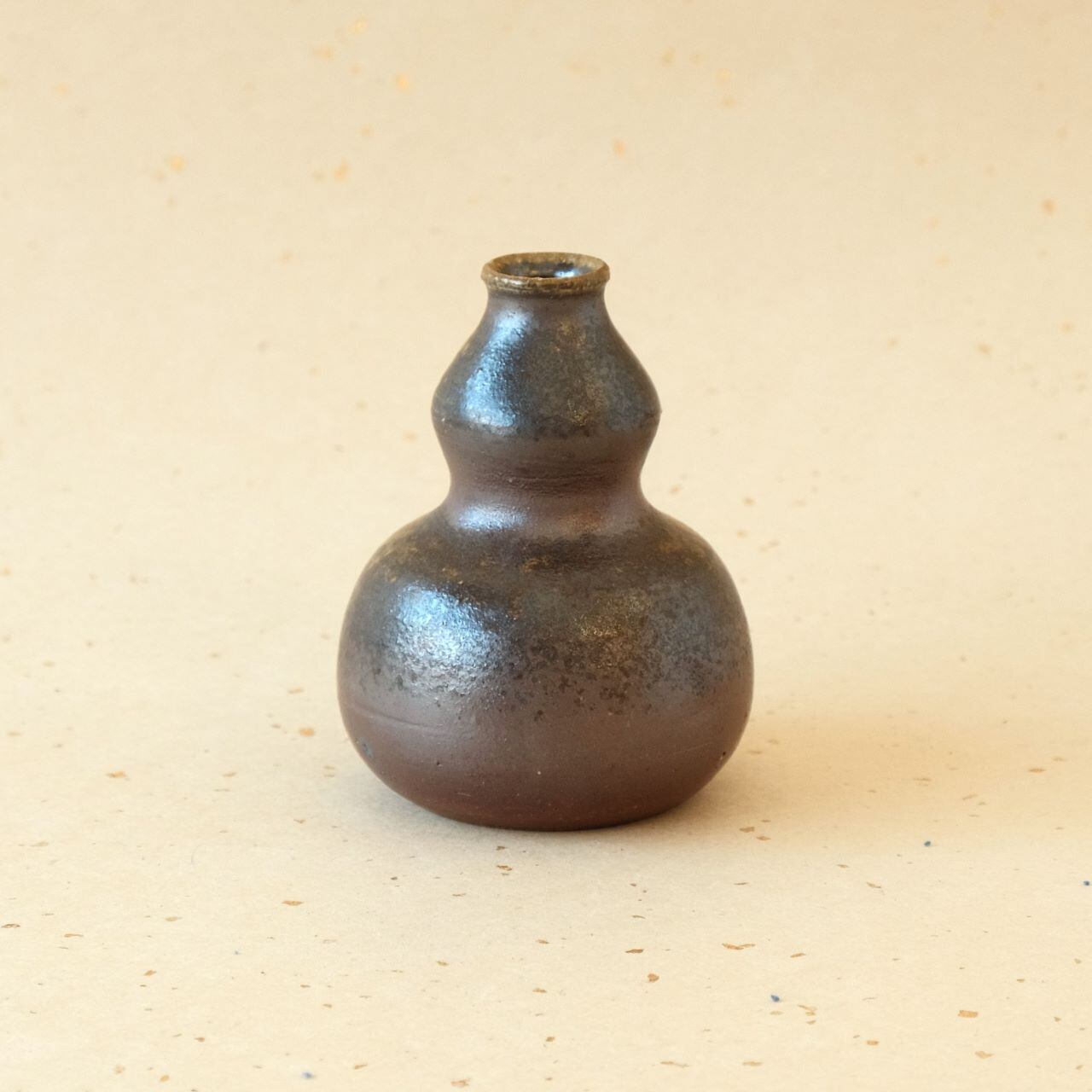 一輪花入などに使っていただける小さな徳利です。燃料の松割木の灰が降りかかった部分に、黄色がかった表情が生まれています。