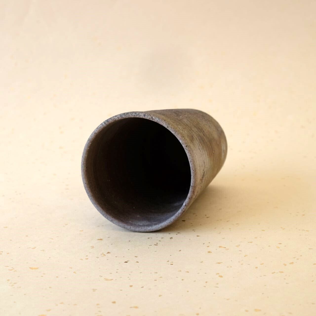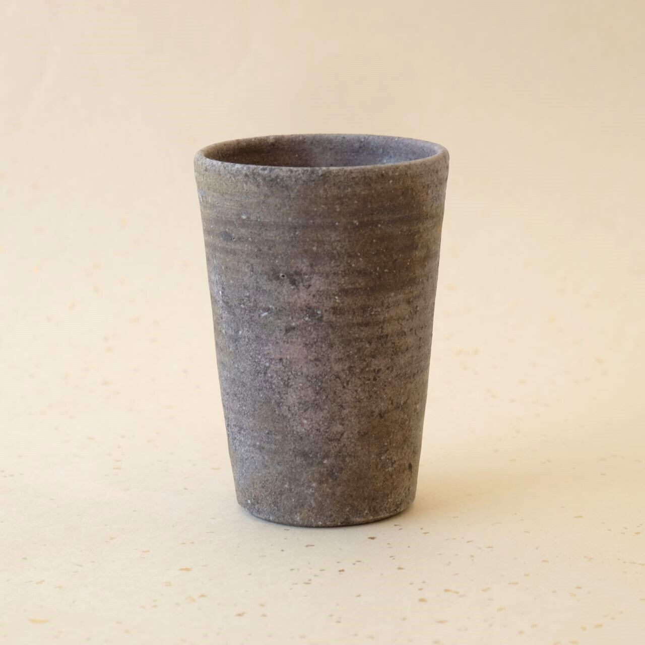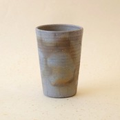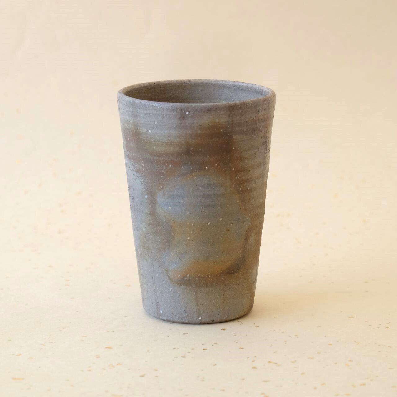 筒形のビアマグです。ビールが美味しくいただけると言われています。焚き口の近くで焼成することにより、灰や炭の影響を受け、多彩な変化が生まれています。