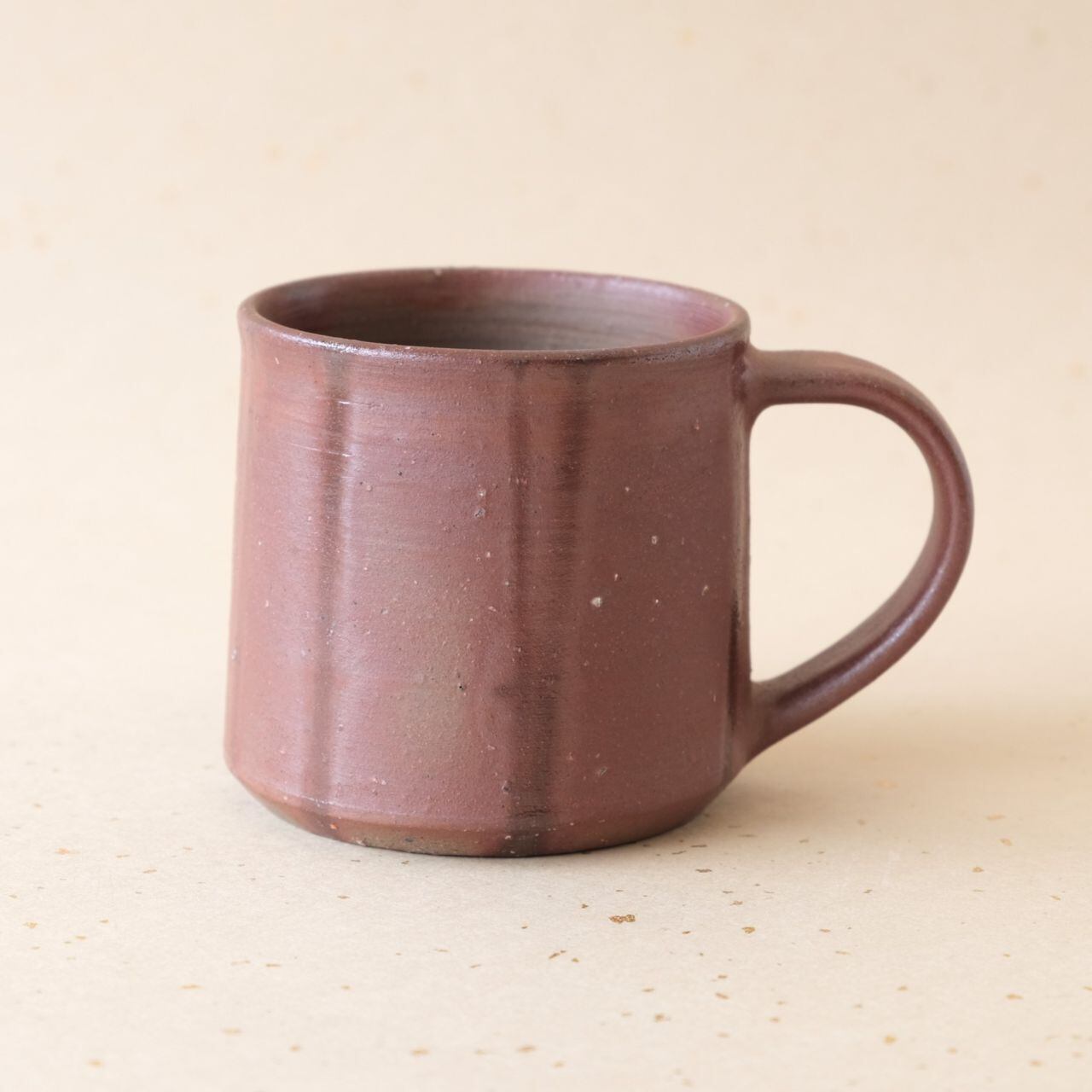 標準サイズのマグです。普段使いとしてもさまざまな用途でご使用いただけます。全体的に落ち着いた色合いになっており、藁を巻いていた部分は濃赤色のラインとなっています。