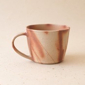 筒形のコーヒーカップです。コーヒーの苦味を和らげてくれると言われています。うつわの側面にワラを巻いた部分が赤く発色し、柔らかい雰囲気となっています。