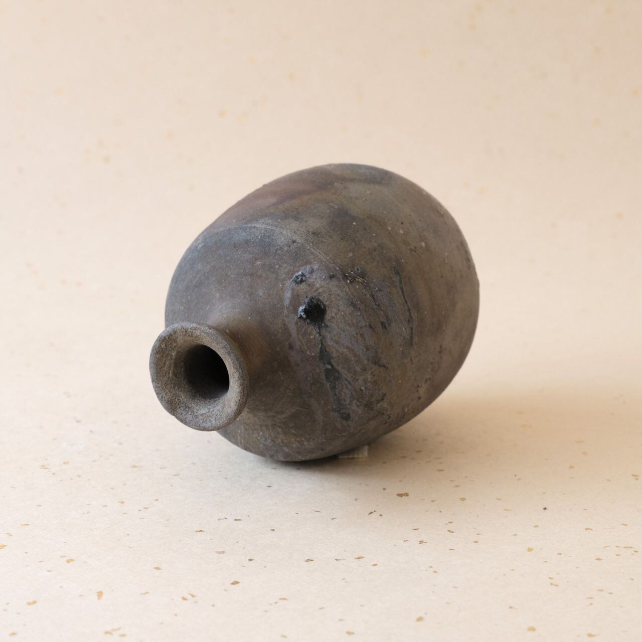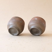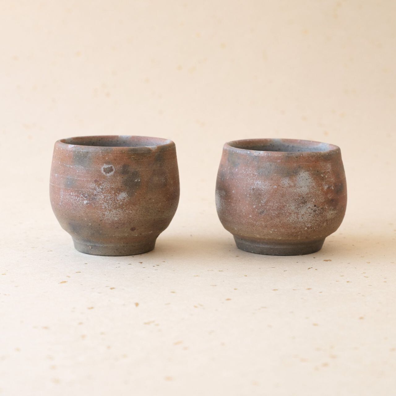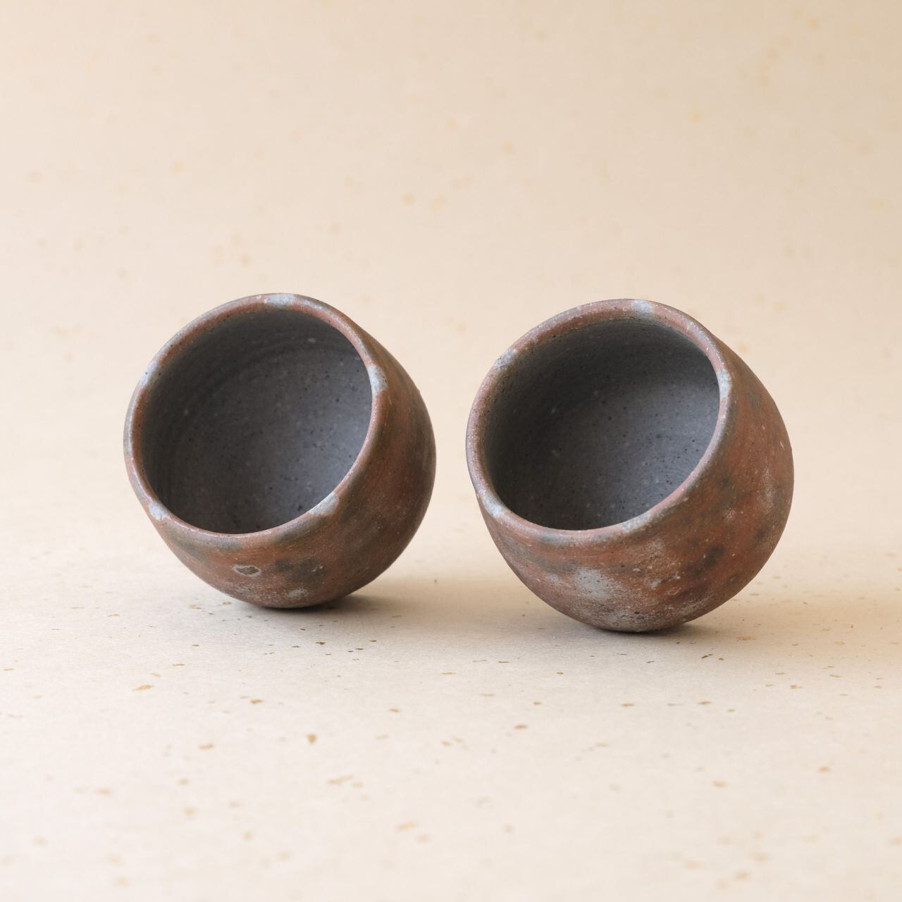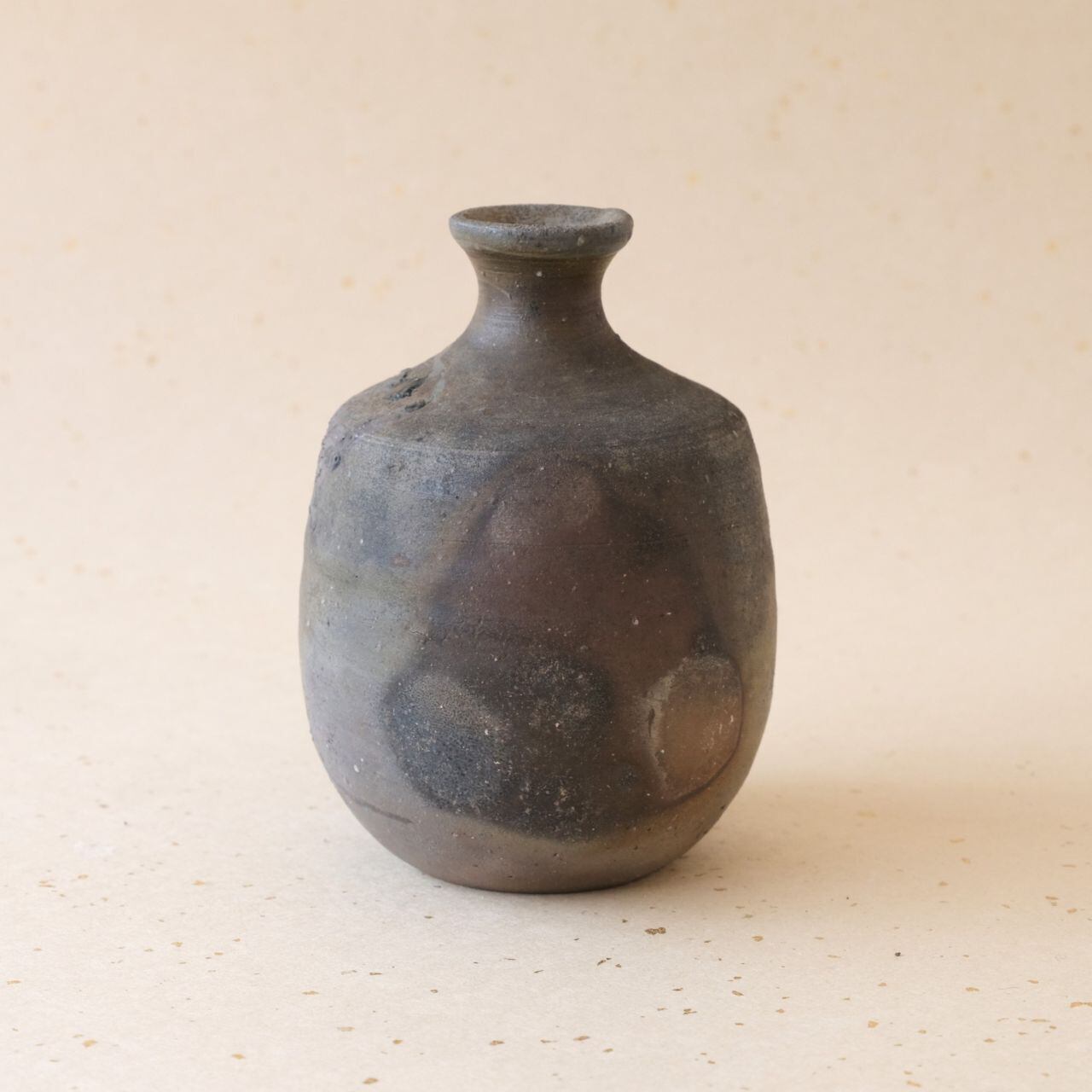 日本酒との相性が抜群の徳利とぐい呑のセットです。木炭のガスの影響を受けて全体的に青みがかった発色となっています。