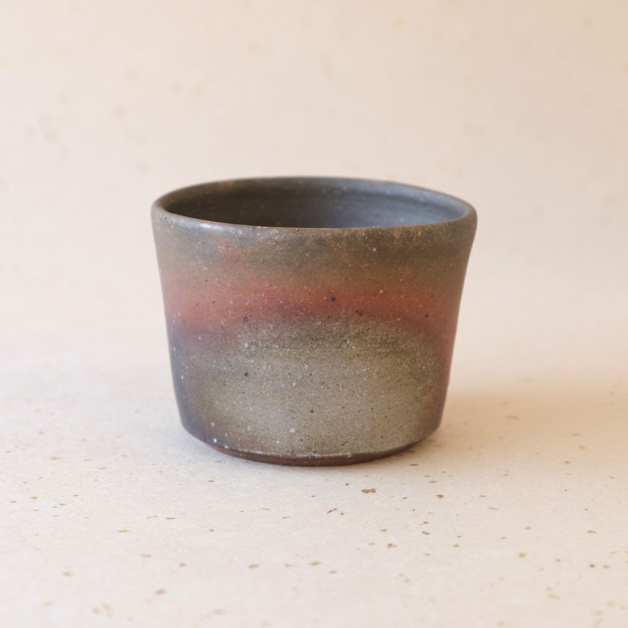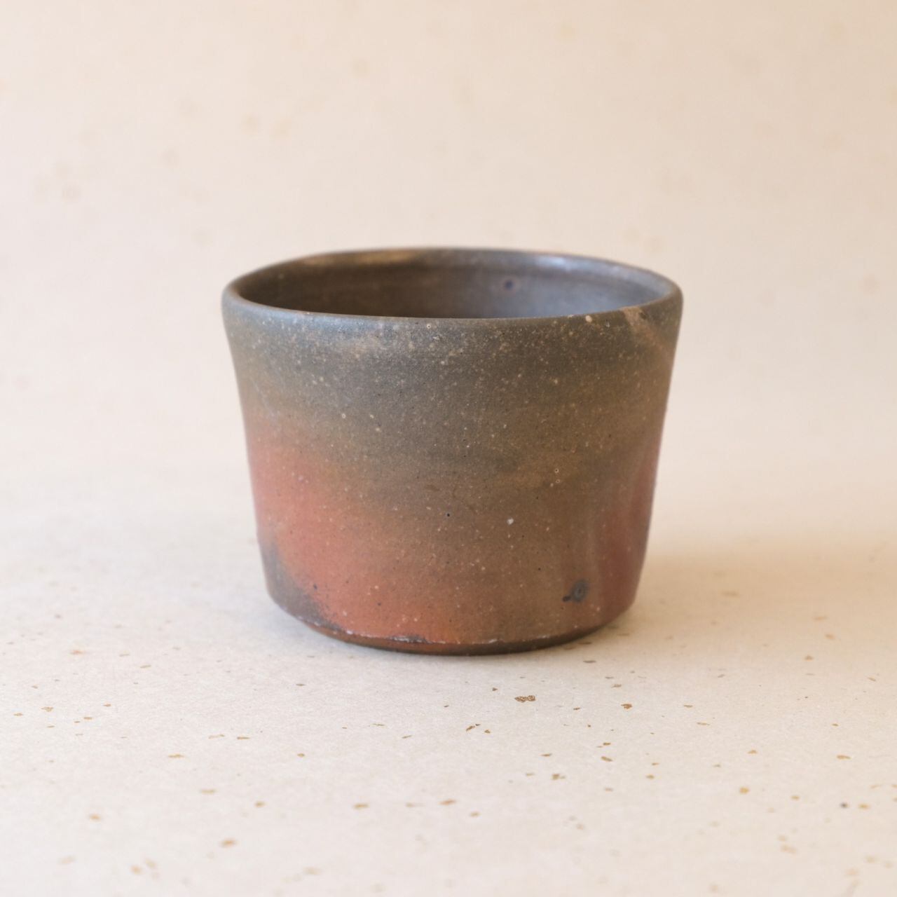 フリーカップとしても使っていただけるシンプルなデザインの蕎麦猪口です。うつわの側面には、木炭のガスの作用により、グラデーション模様が現れています。