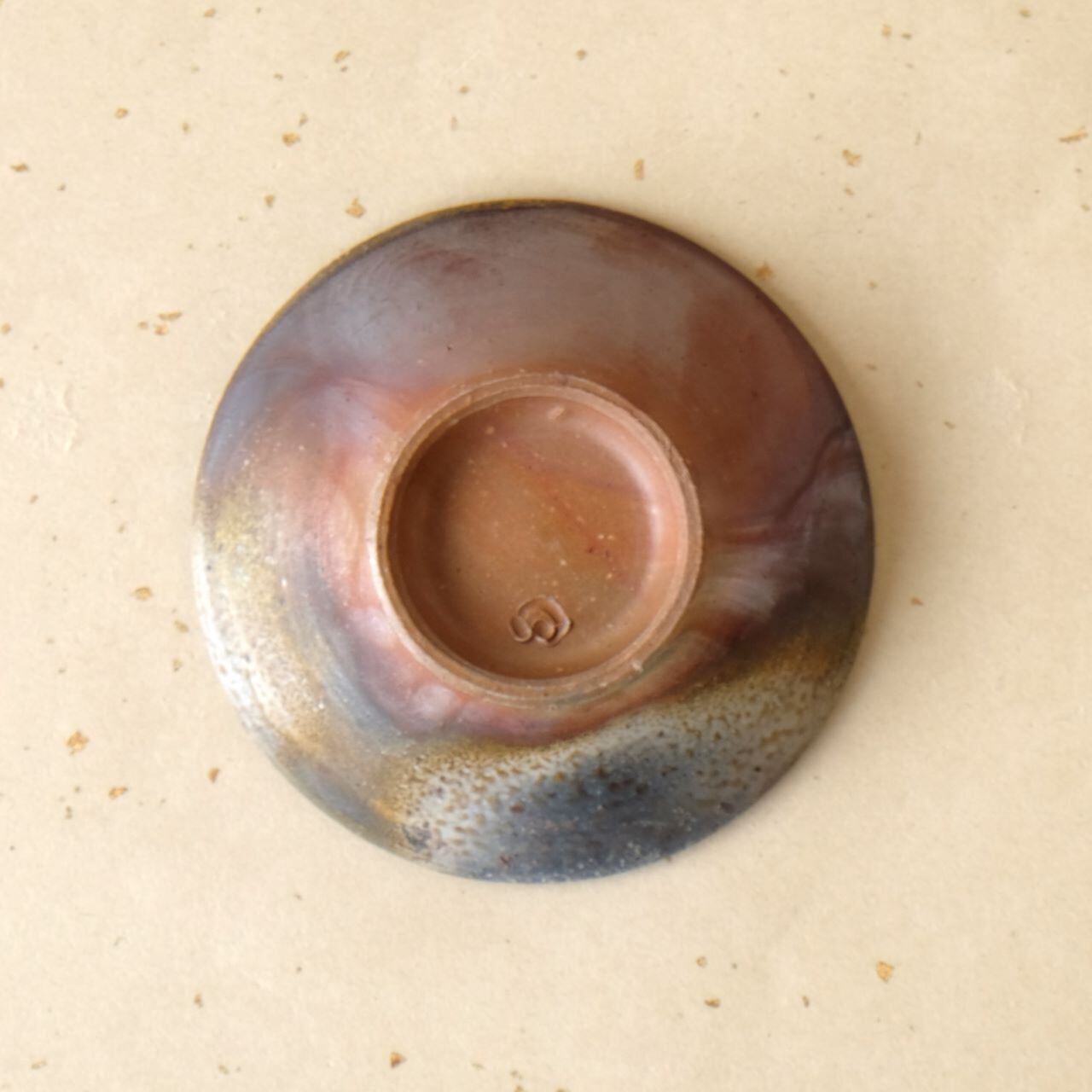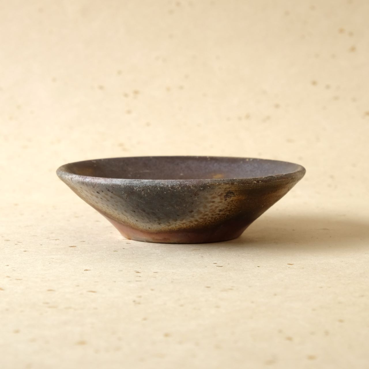 やや深さのあるシンプルなデザインの豆鉢です。木炭のガスの影響を受けて、内側と外側の両面に多彩な変化を見せています。