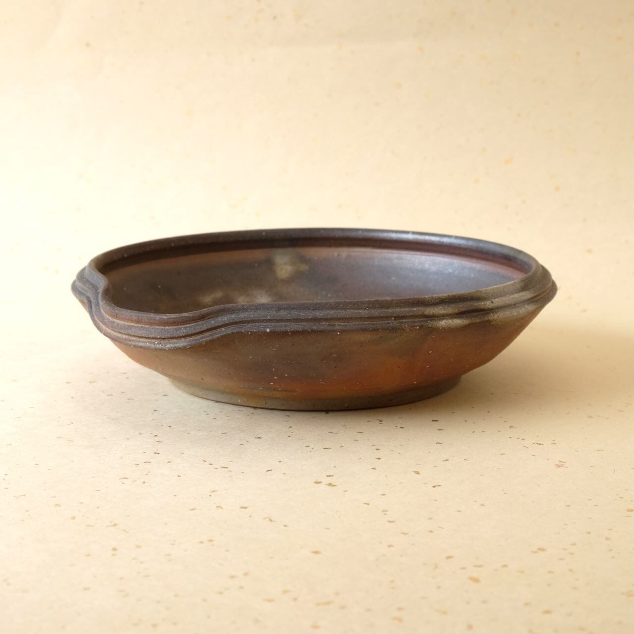 口縁部のデザインに変化を付けた浅めの鉢です。煮物やサラダなど料理だけでなく、菓子器としても使っていただけます。中央の抜け部分(牡丹餅)が景色のアクセントになっています。