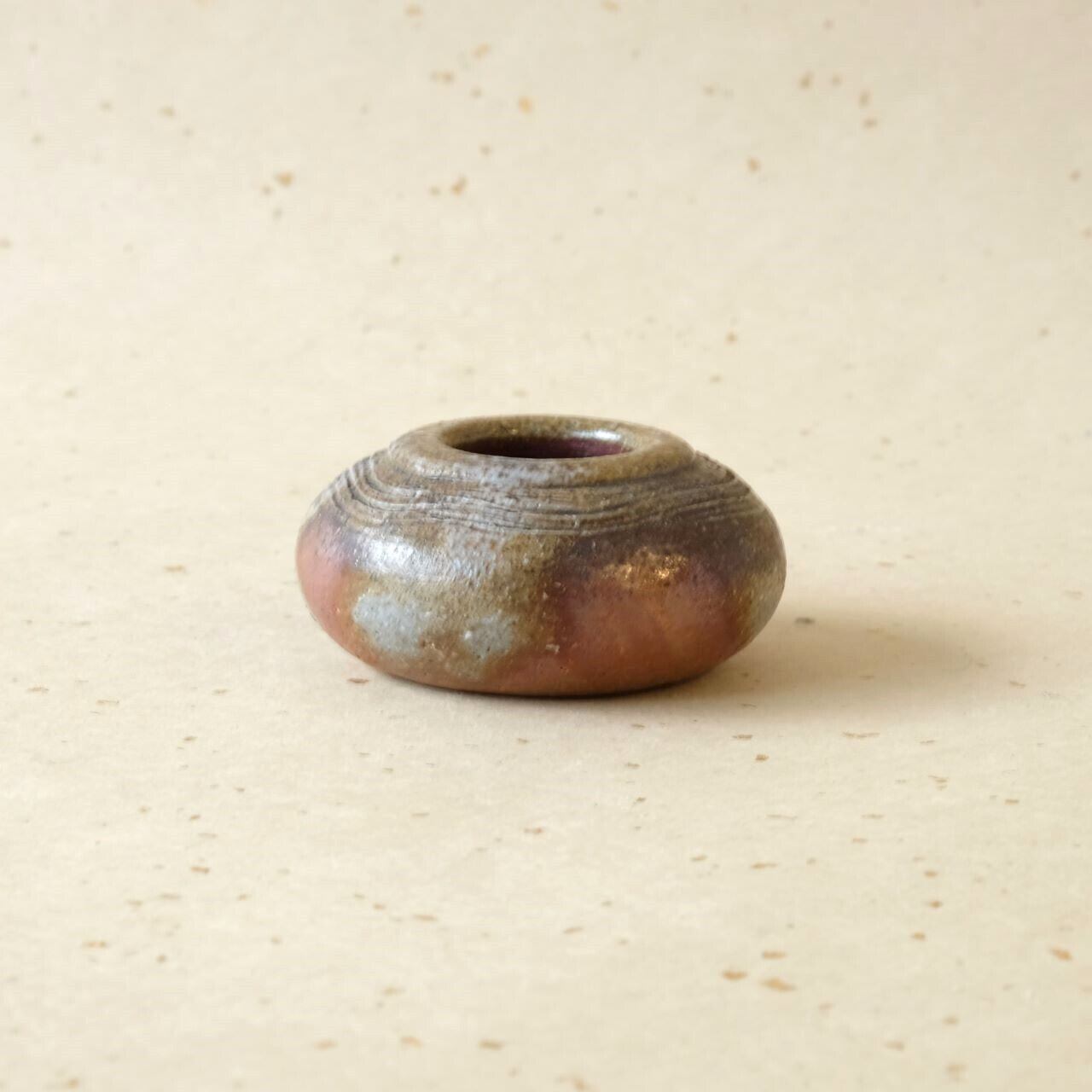 卓上花入にも使っていただける小品です。木炭から出るガスの影響を受けた部分が、青みがかったグラデーションを生み出しています。