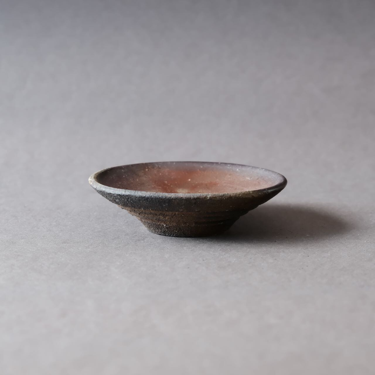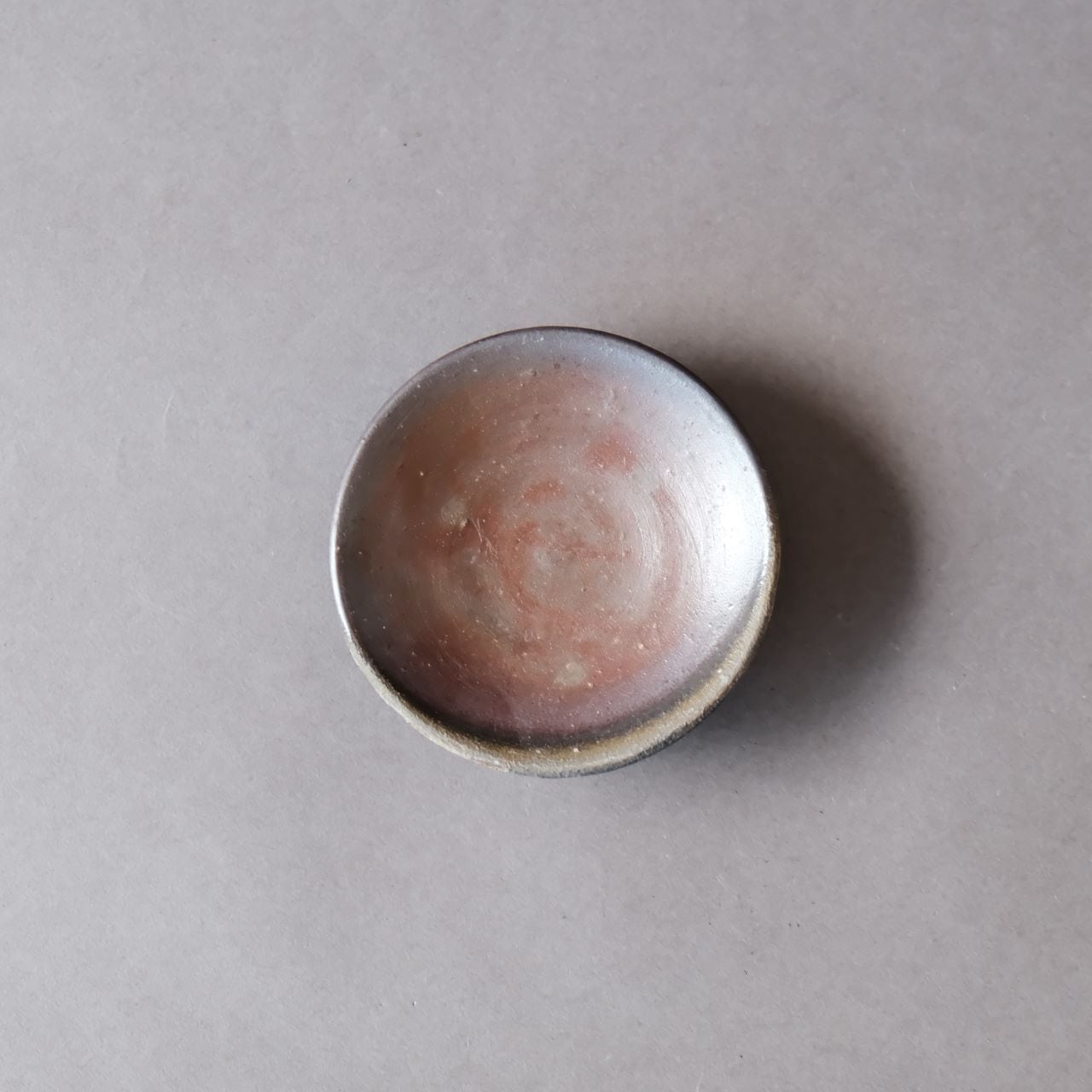 とても小さなサイズの豆皿です。深さがあるので汁気のあるものにも使えます。燃料の松割木の灰が吹き付ける場所に伏せて焼成したため、両面ともに多彩な変化が見られます。