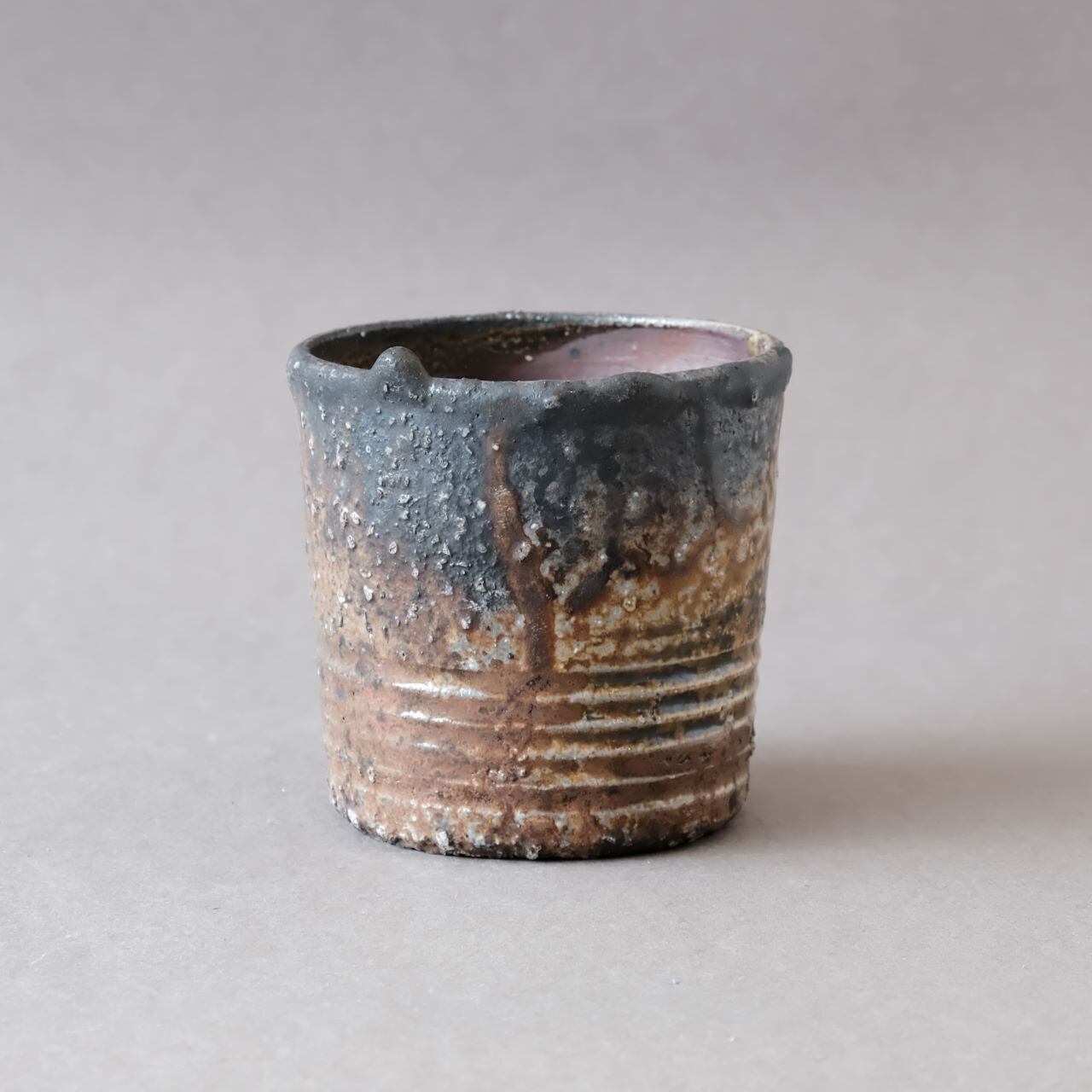 フリーカップとしても使っていただけるシンプルなデザインの蕎麦猪口です。焚口の近くで焼成することにより、燃料の松割木の灰や炭の影響を受け、多彩な変化を見せています。