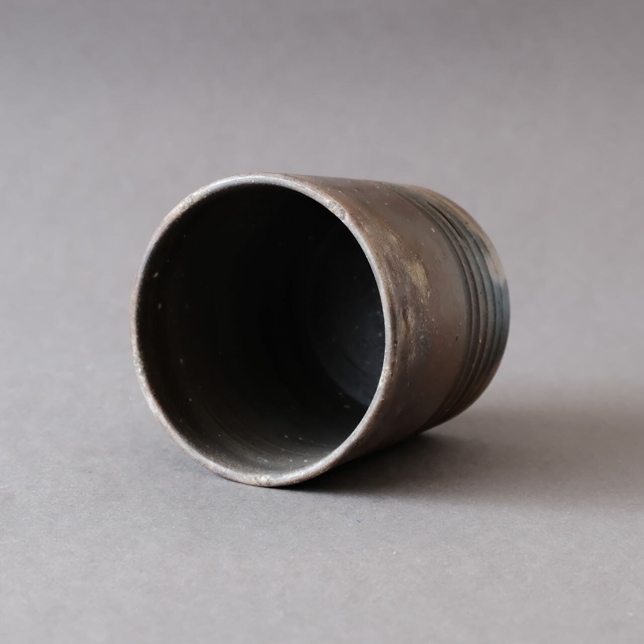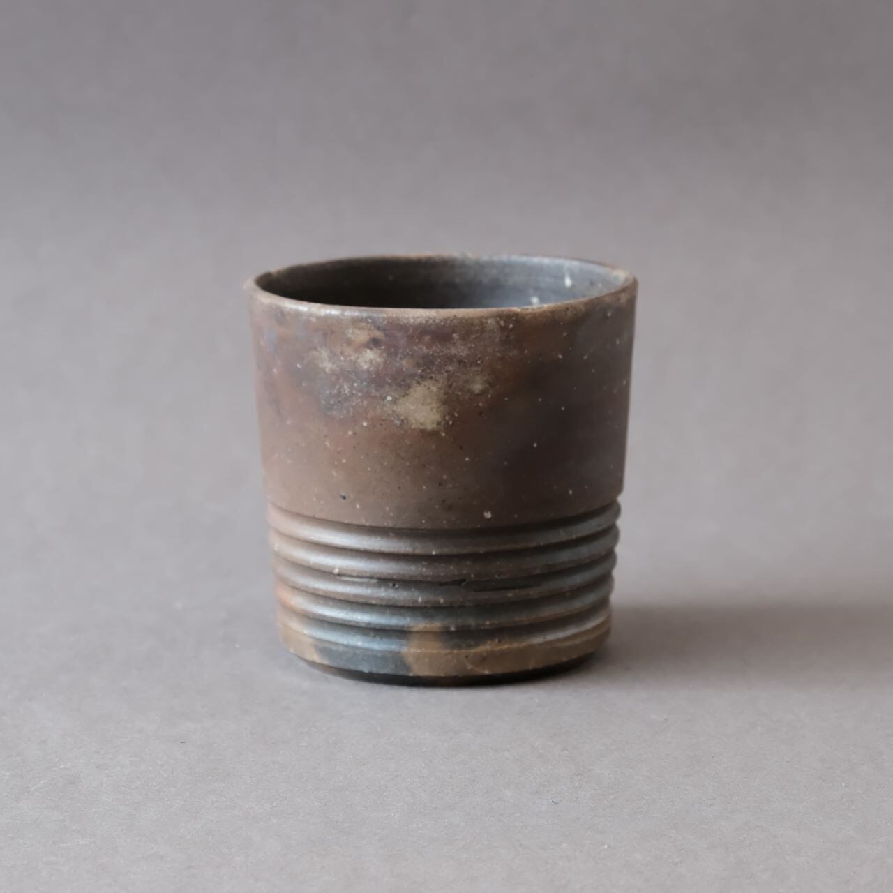 フリーカップとしても使っていただけるシンプルなデザインの蕎麦猪口です。窯の火を止める直前に投入する木炭のガスの影響を受け、緑色や青みがかった変化が現れています。