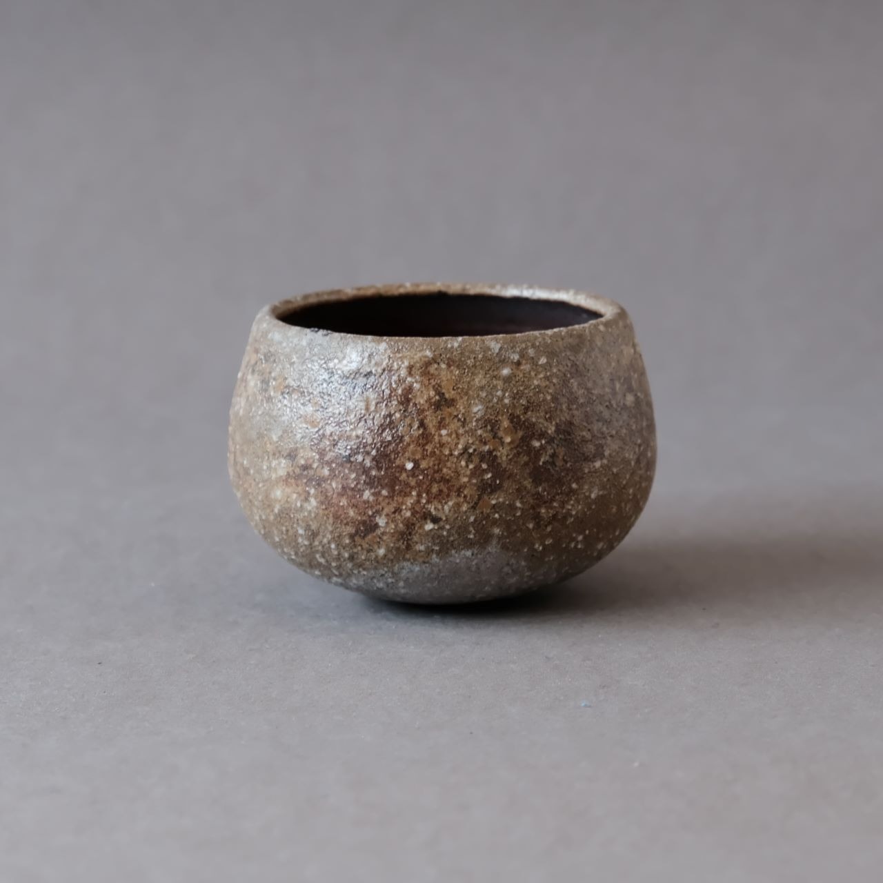 ゆらゆらと揺れるぐい呑です。燃料の松割木の灰に埋もれた状態で焼成されることにより、独特の質感と景色が生まれています。
