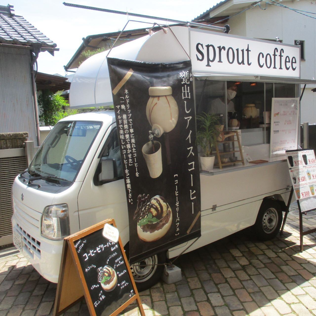 岡山を拠点にキッチンカーで移動・出張カフェを行なっているSprout Coffeeさん。備前焼を随所に使用することで、その素晴らしさを広めながら、岡山県内を中心に「備前焼×食」をテーマにした活動を展開してくださっています!