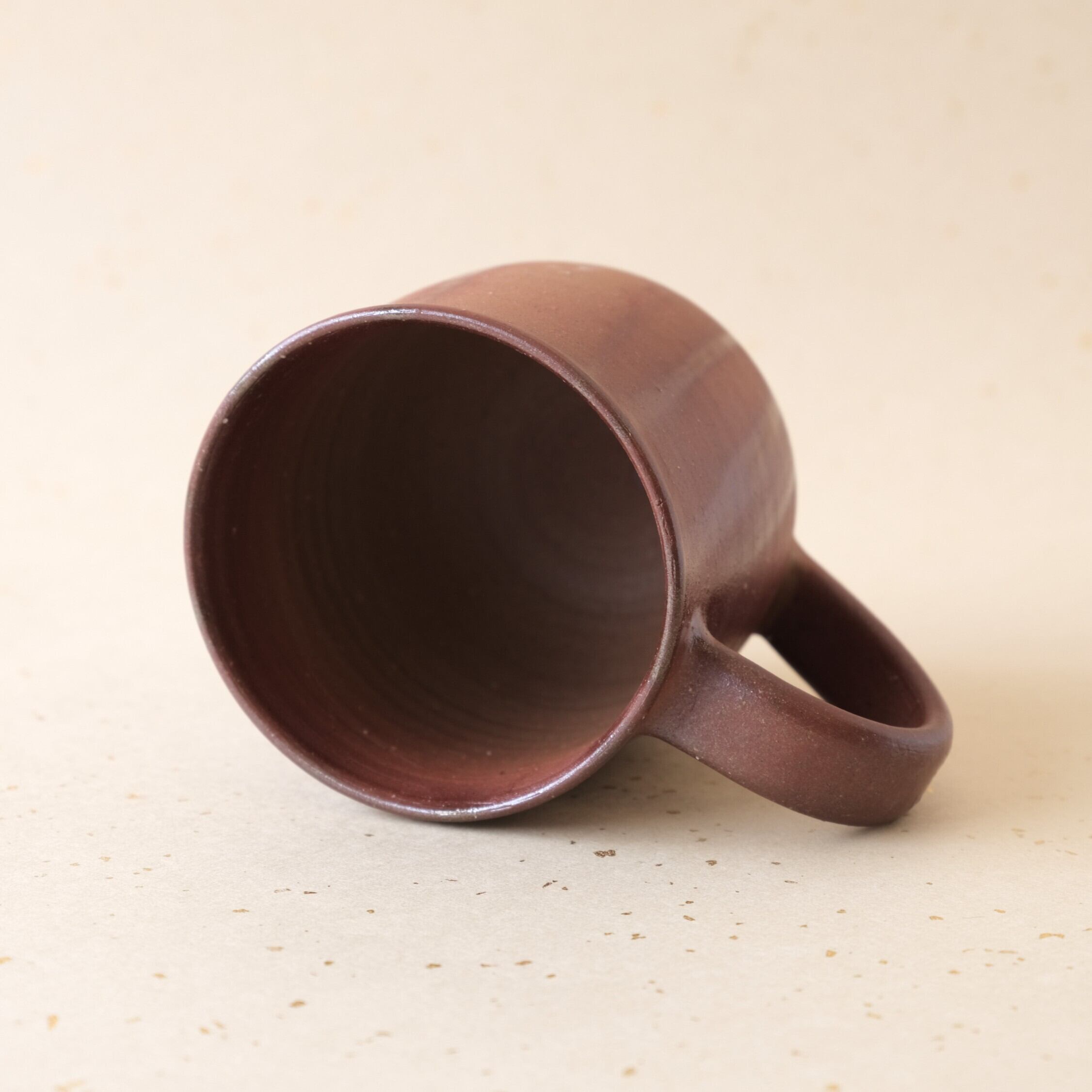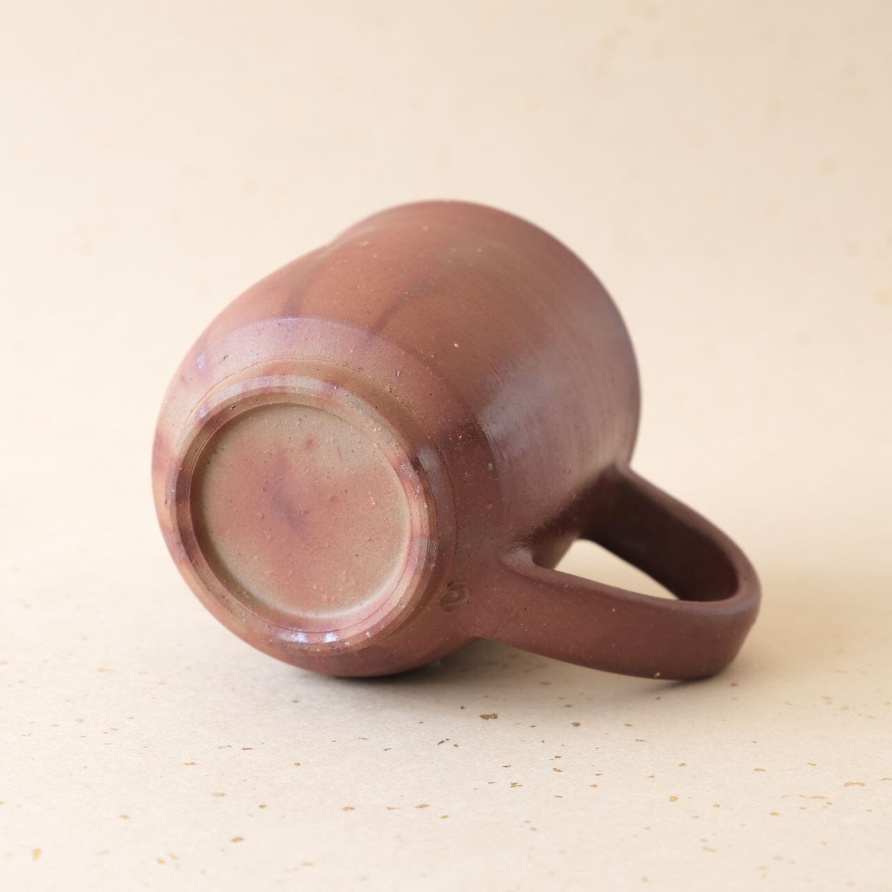 大ぶりなマグです。ビールを飲むジョッキとしてもご使用いただけます。全体的に落ち着いた色合いになっており、藁を巻いていた部分は濃赤色のラインとなっています。