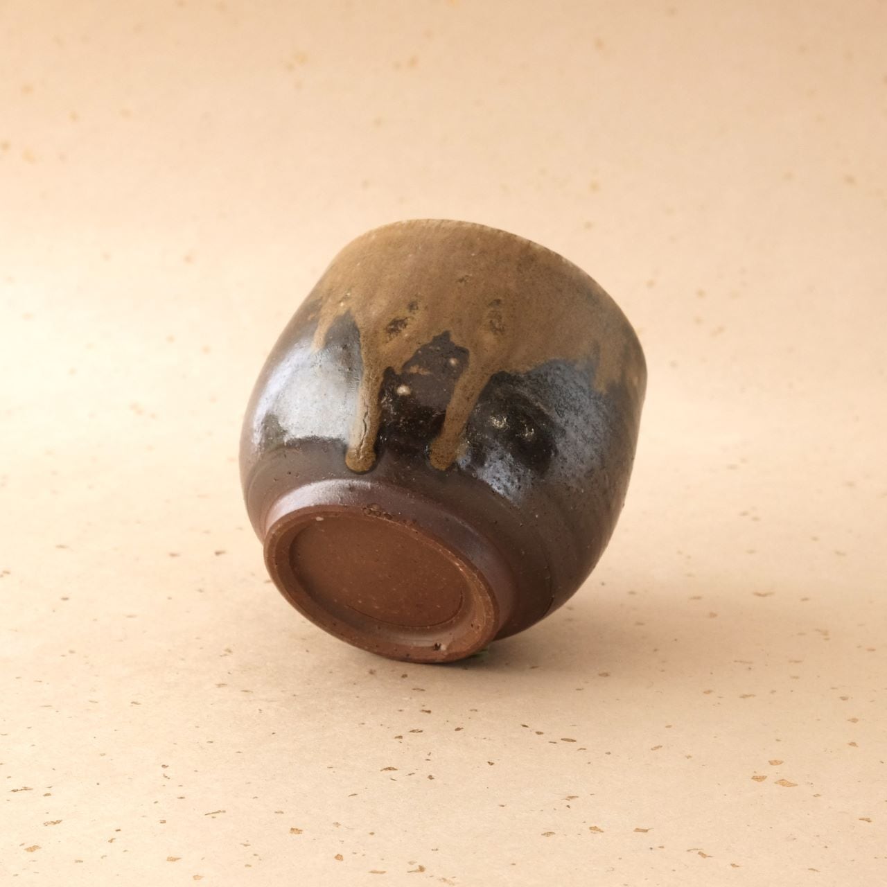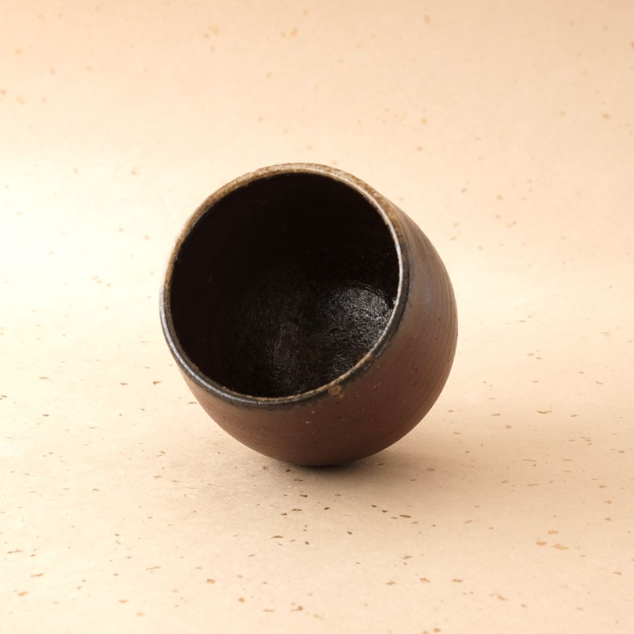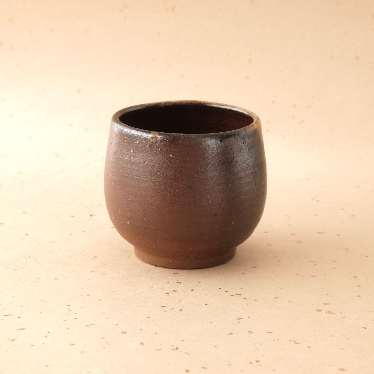 小ぶりの湯呑です。お茶を飲んだり、コーヒーを飲んだりとさまざまな場面でご使用いただけます。うつわの側面には、燃料の松割木の灰が付着し、黄味がかった色合いが現れています。