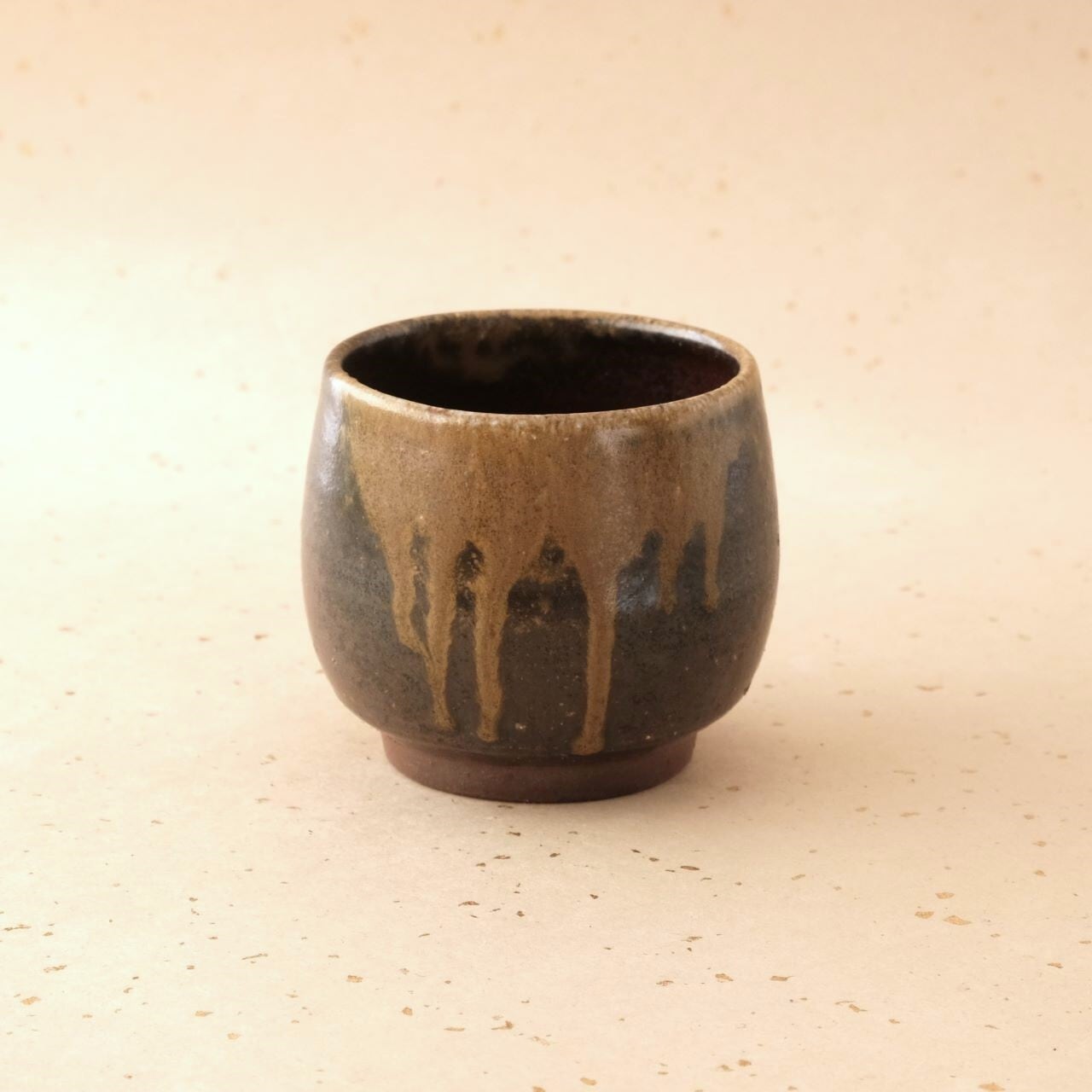 小ぶりの湯呑です。お茶を飲んだり、コーヒーを飲んだりとさまざまな場面でご使用いただけます。うつわの側面には、燃料の松割木の灰が付着し、黄味がかった色合いが現れています。