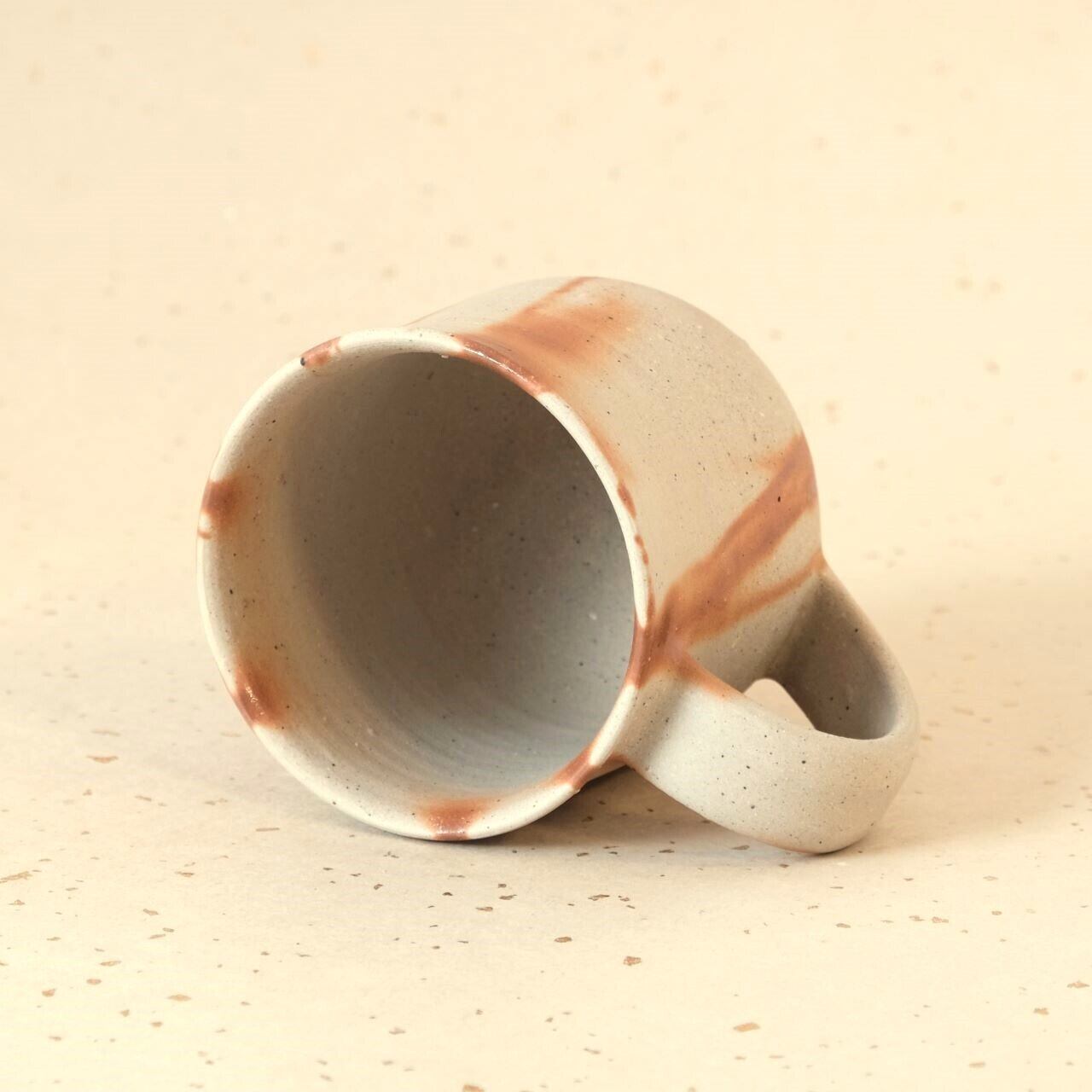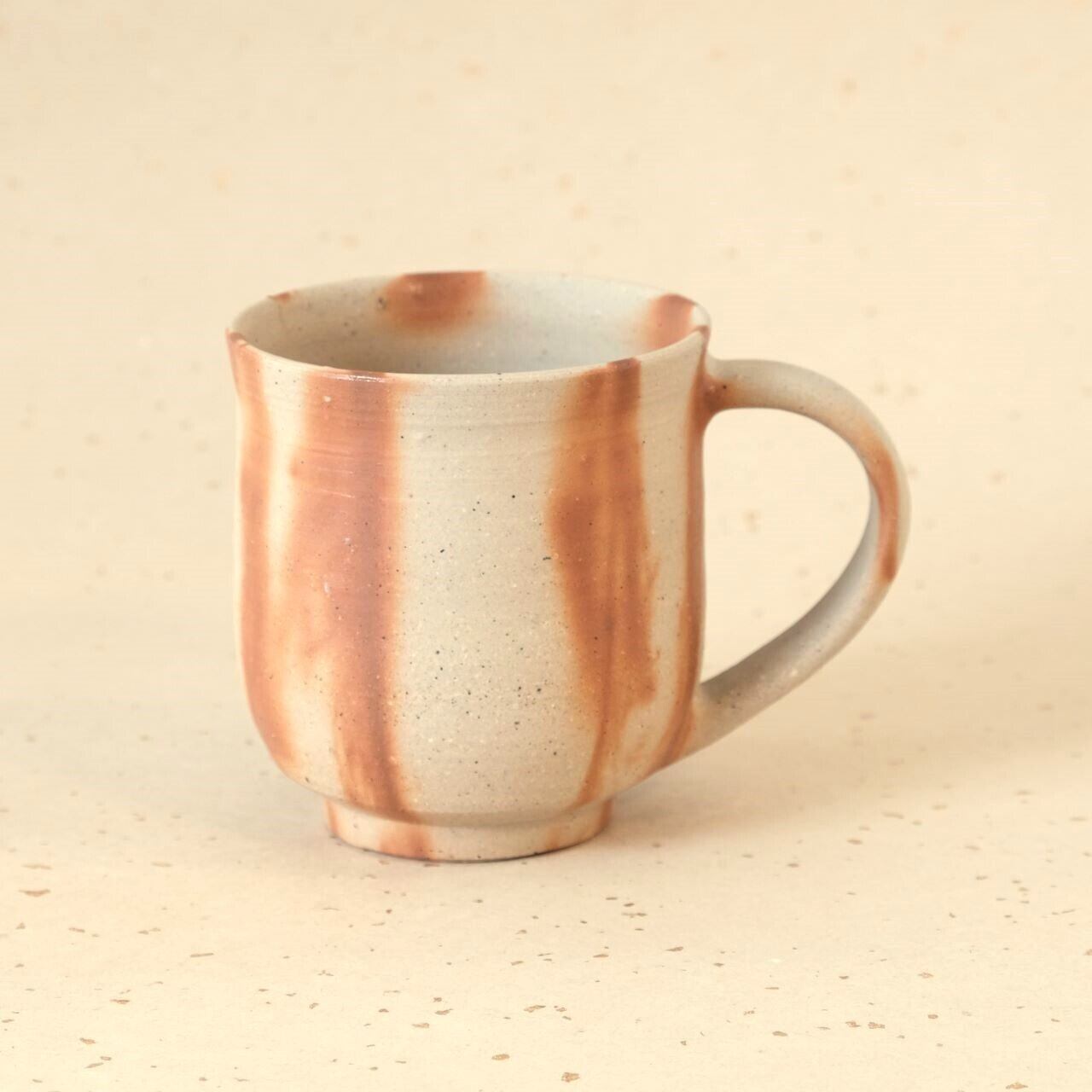標準サイズのマグです。普段使いとしてもさまざまな用途でご使用いただけます。藁を巻いていた部分が赤く発色し、景色となっています。