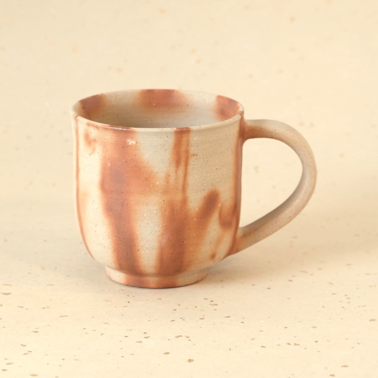 標準サイズのマグです。普段使いとしてもさまざまな用途でご使用いただけます。藁を巻いていた部分が赤く発色し、景色となっています。