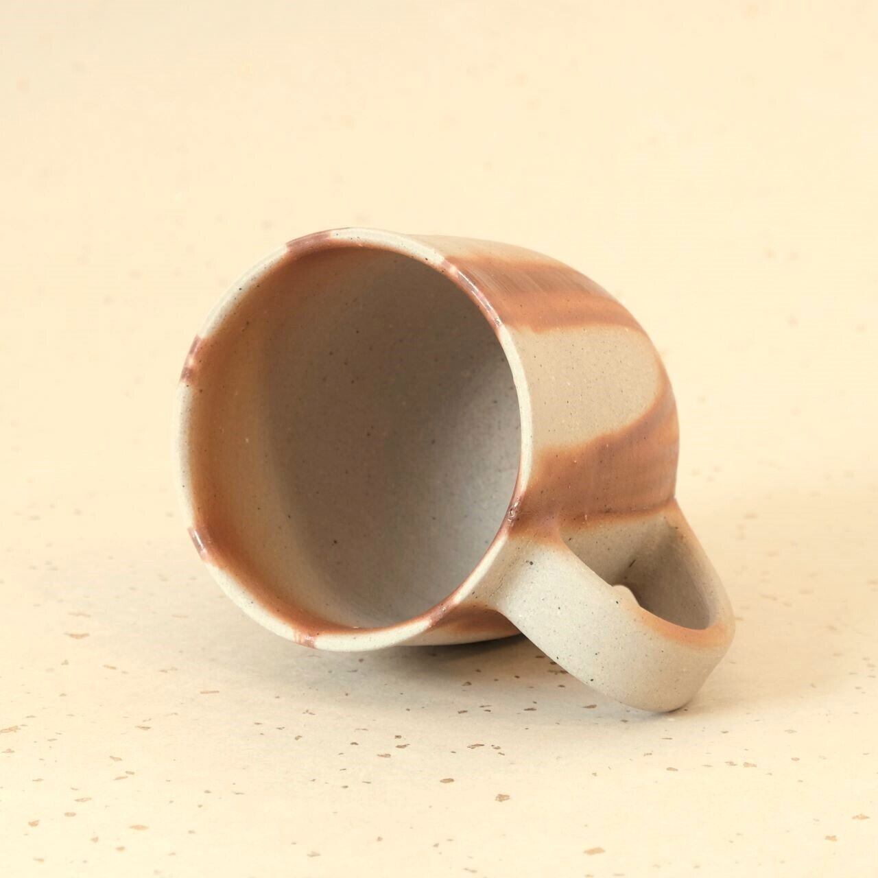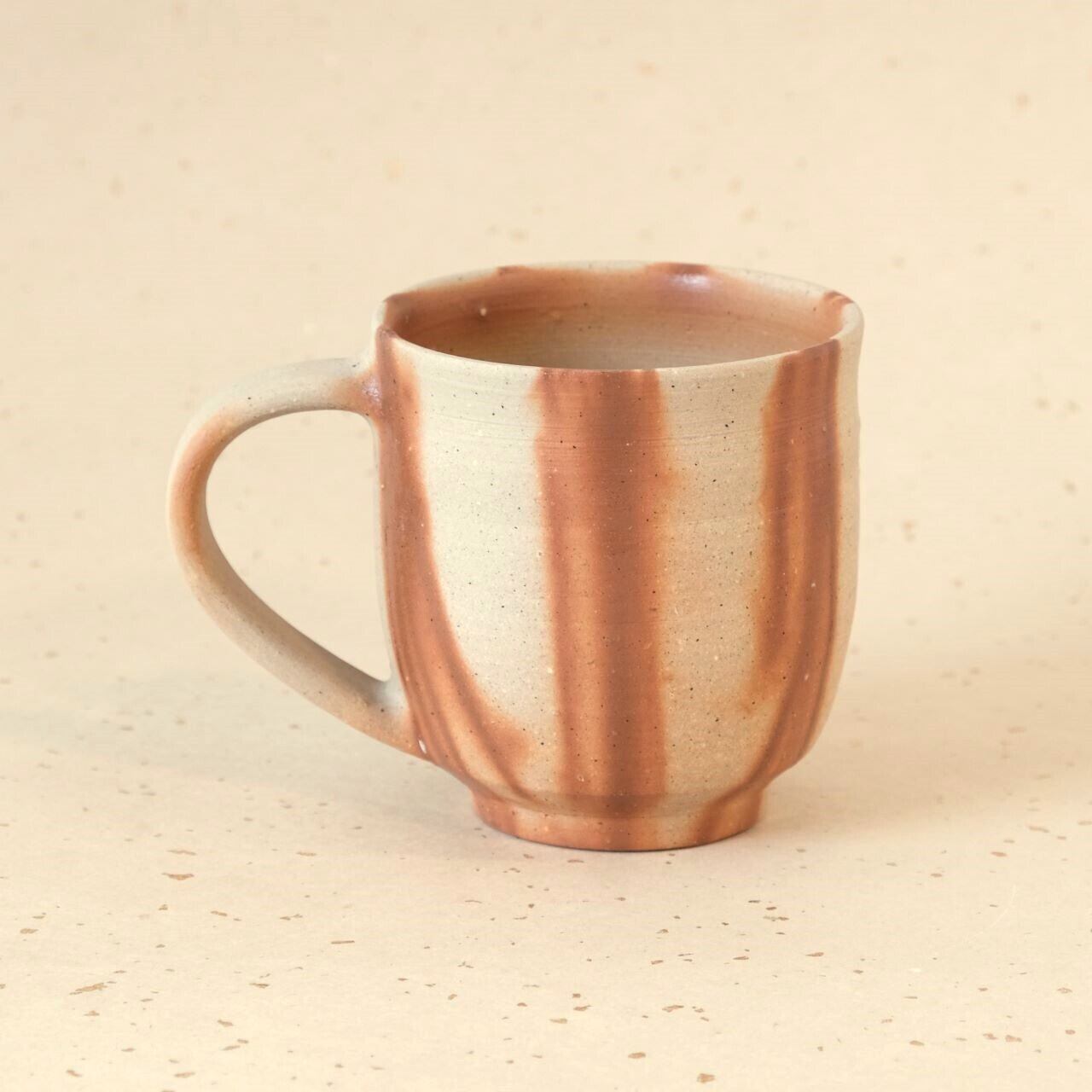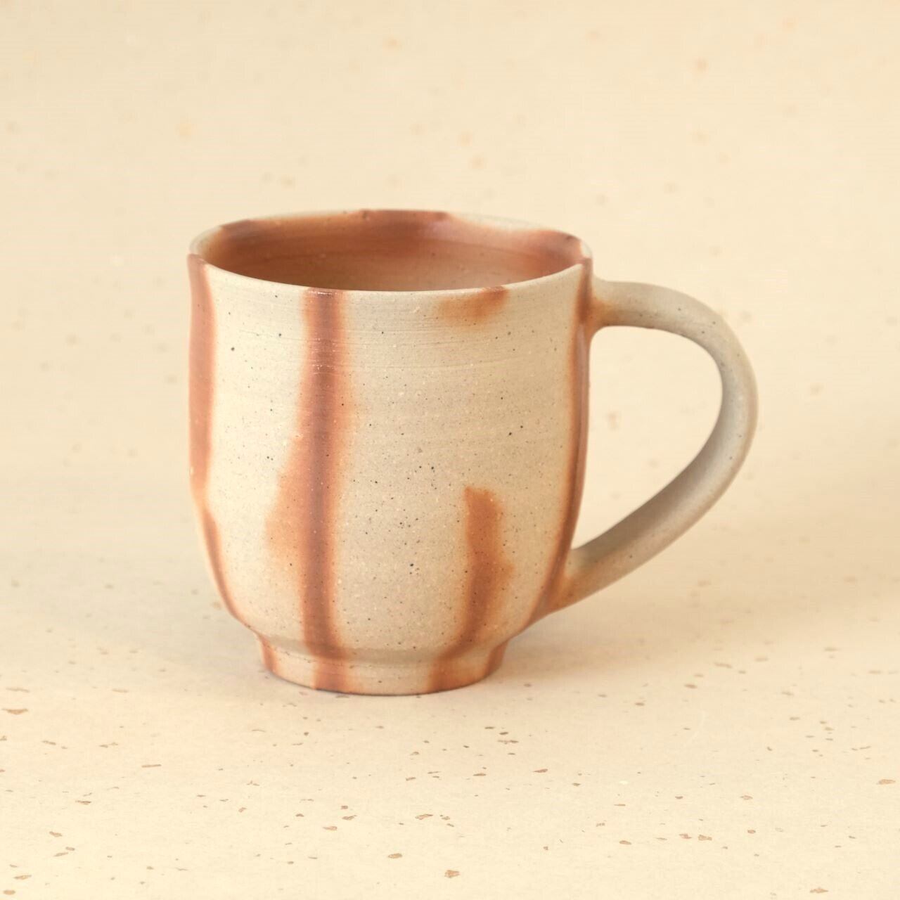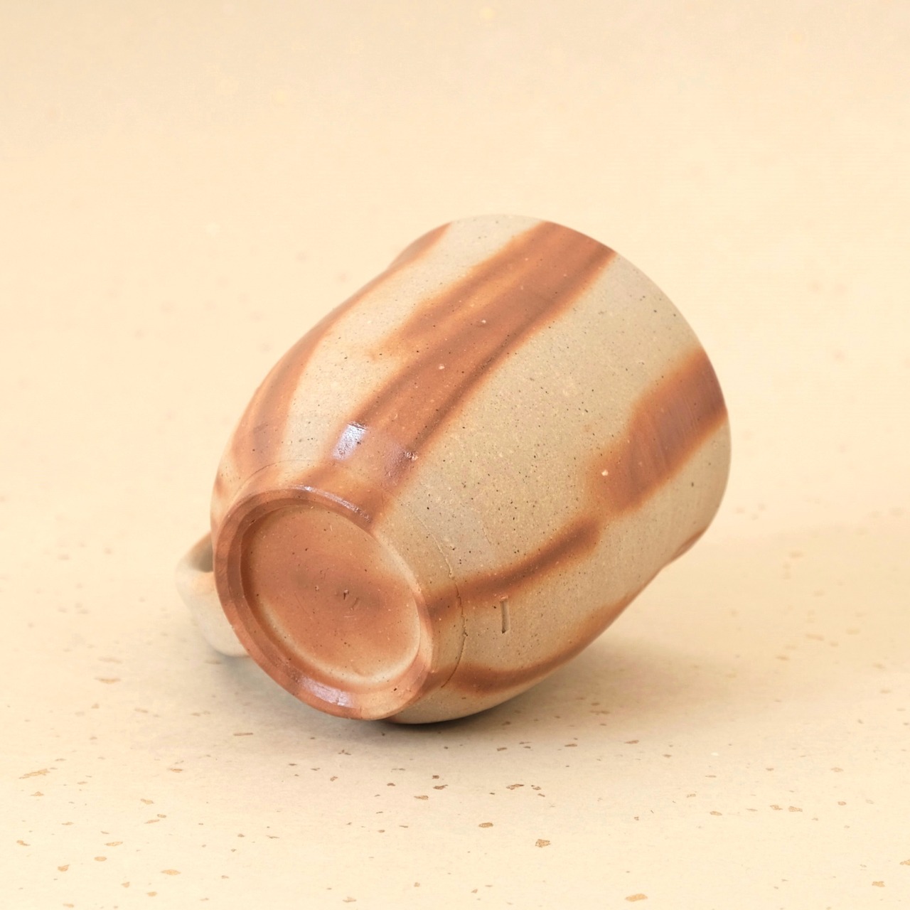 標準サイズのマグです。普段使いとしてもさまざまな用途でご使用いただけます。藁を巻いていた部分が赤く発色し、景色となっています。
