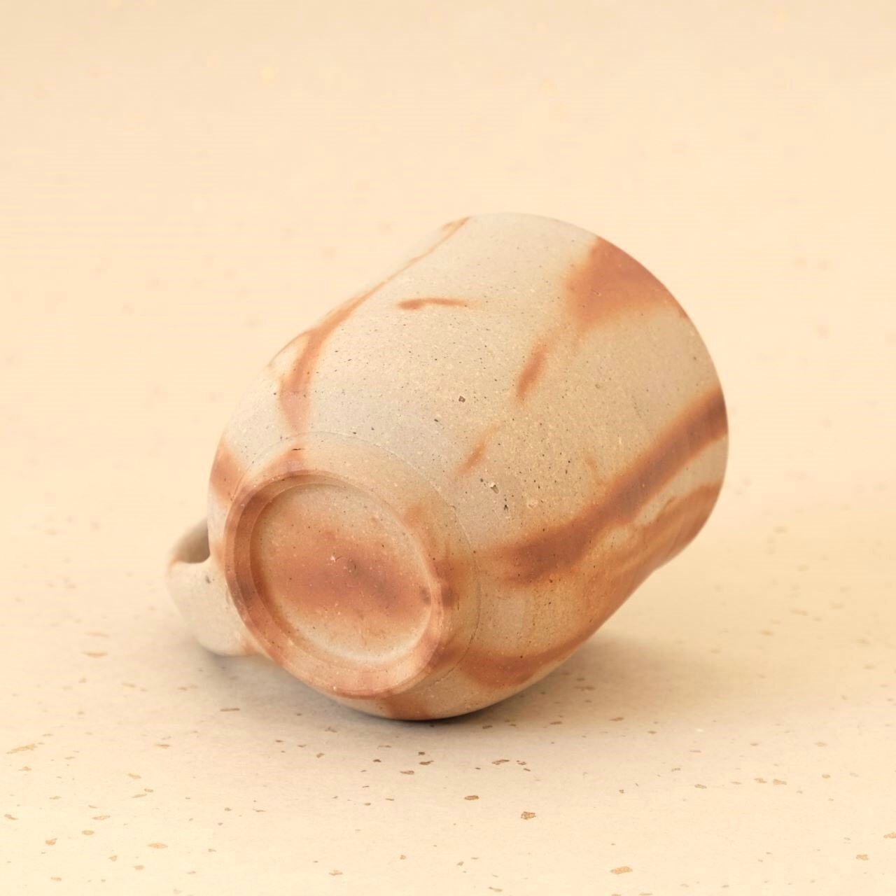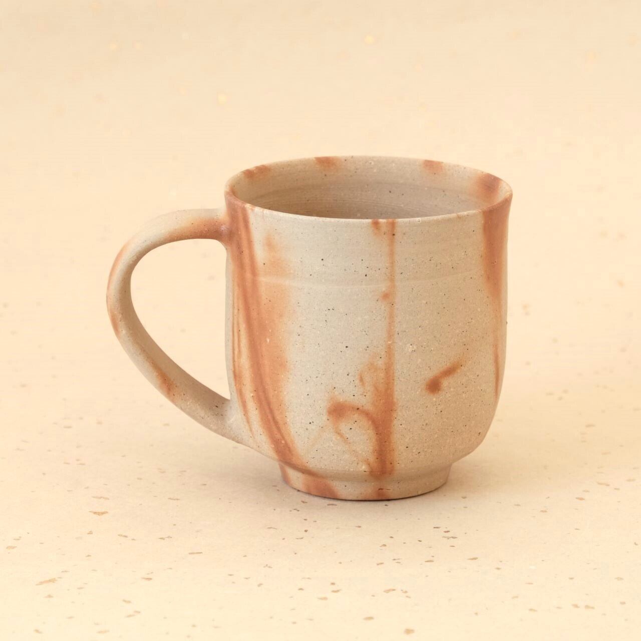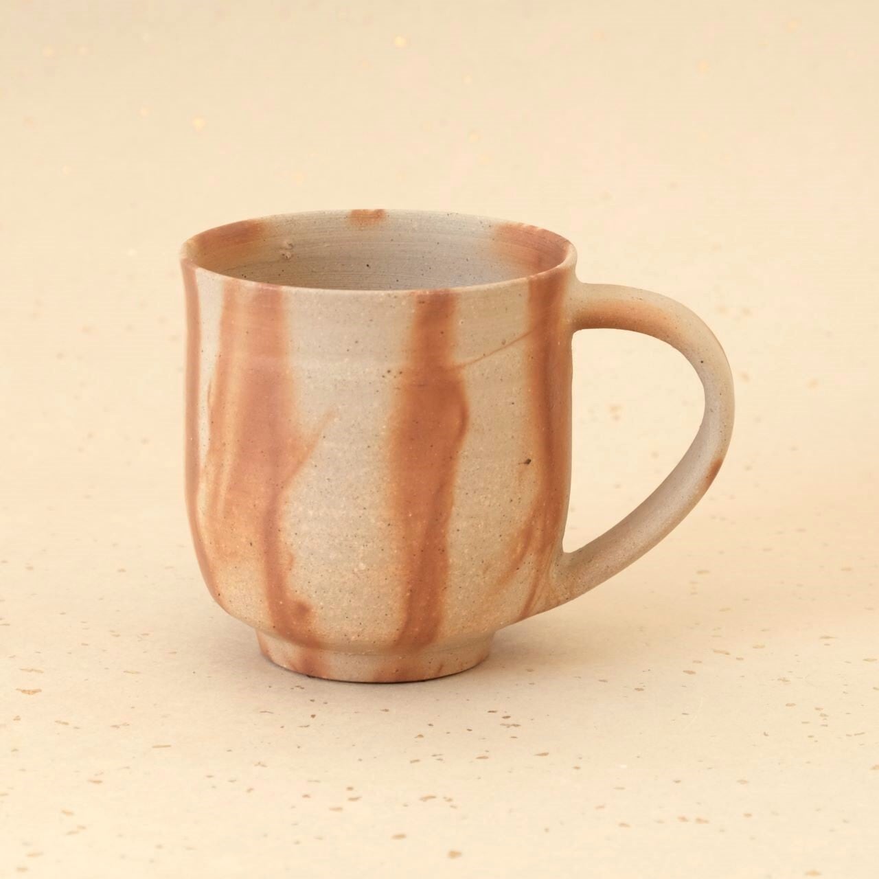 標準サイズのマグです。普段使いとしてもさまざまな用途でご使用いただけます。藁を巻いていた部分が赤く発色し、景色となっています。