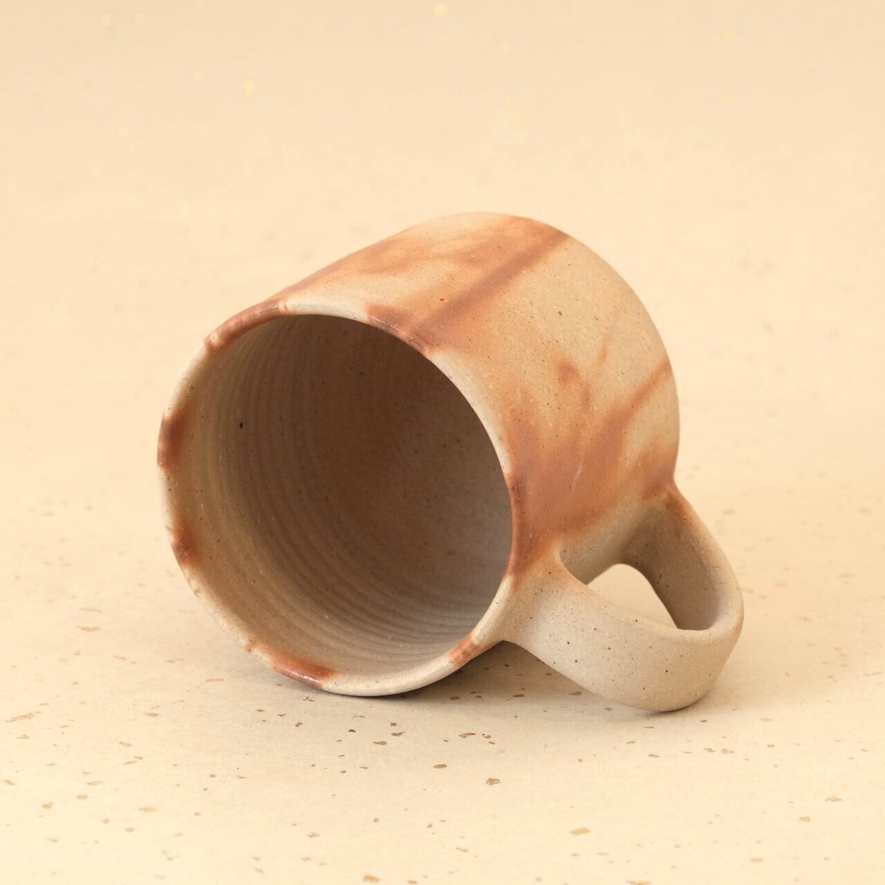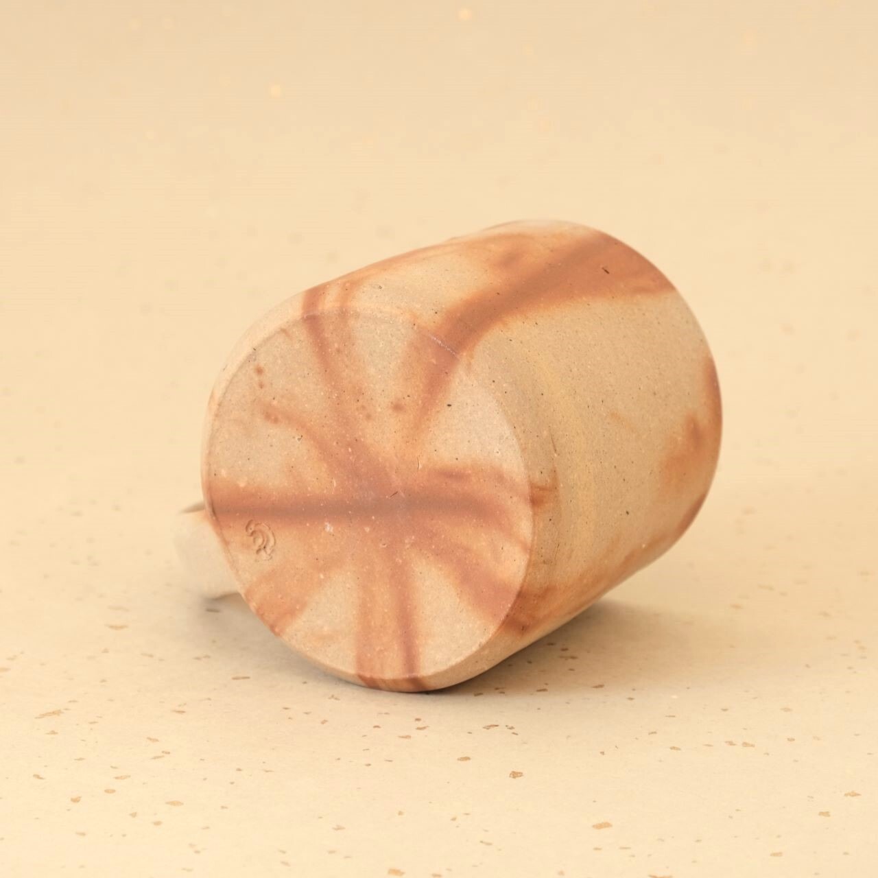 標準サイズのマグです。普段使いとしてもさまざまな用途でご使用いただけます。藁を巻いていた部分が赤く発色し、景色となっています。