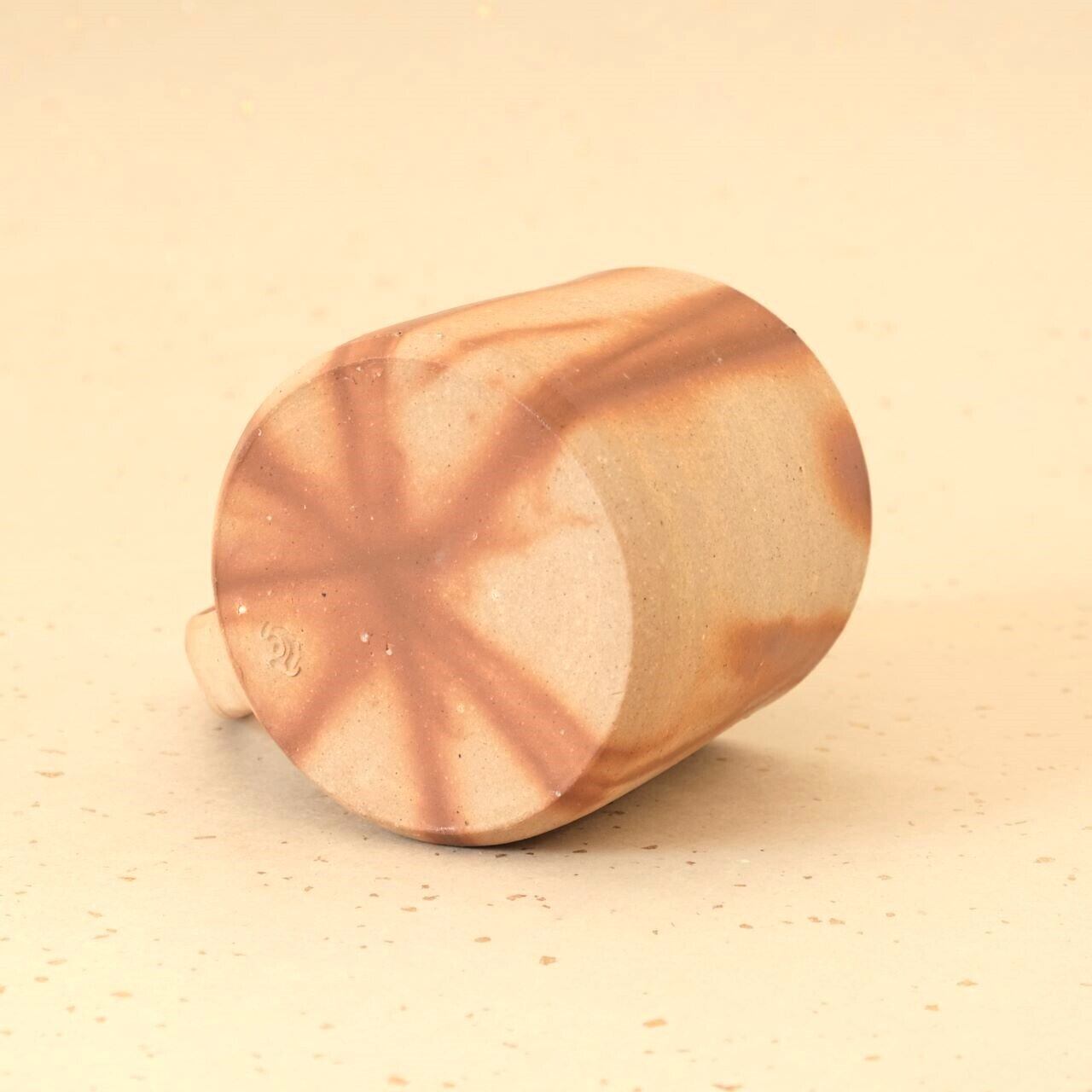 標準サイズのマグです。普段使いとしてもさまざまな用途でご使用いただけます。藁を巻いていた部分が赤く発色し、景色となっています。