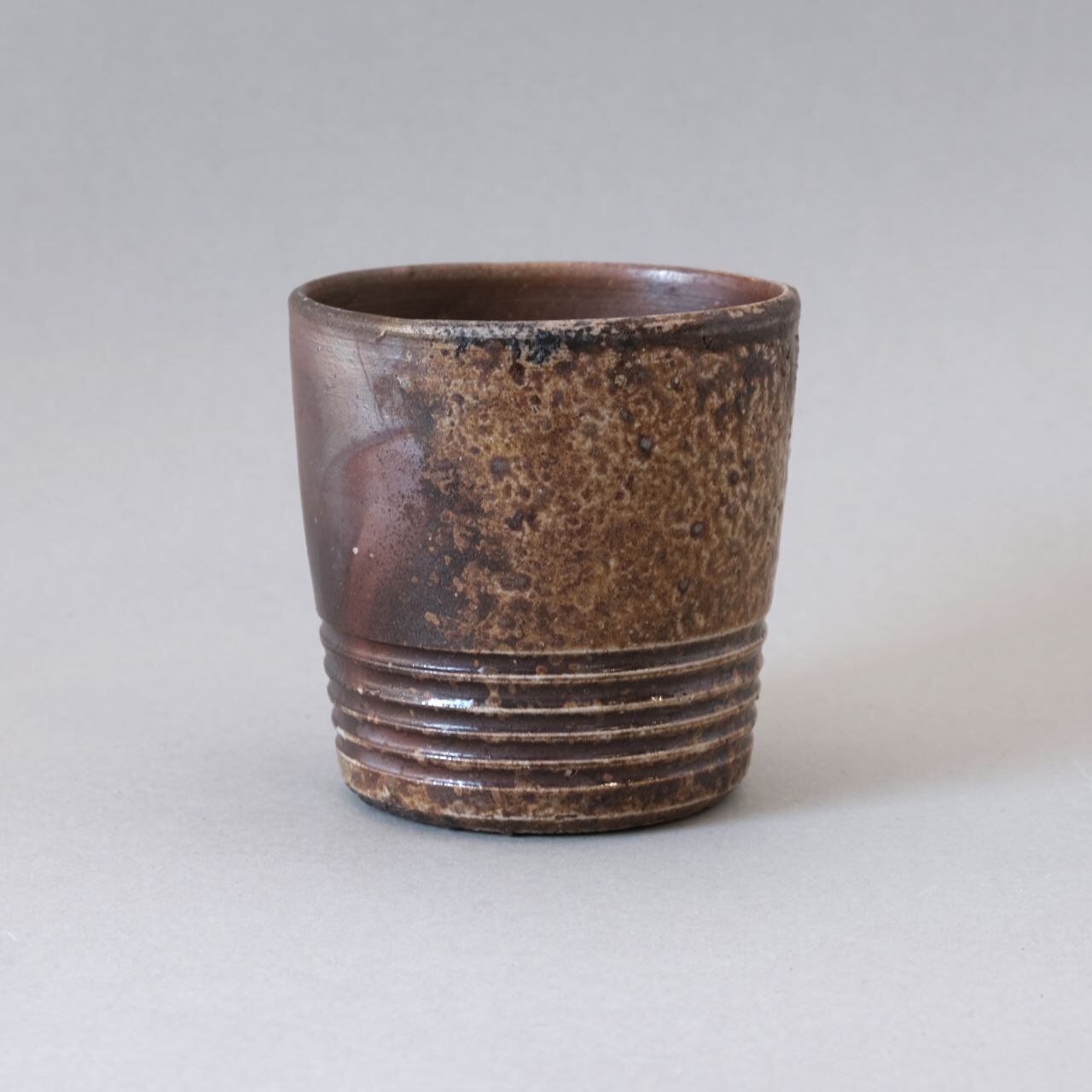 焼酎だけでなく様々な用途に使っていただける大きめのカップです。燃料の松割木の灰に埋もれた状態で焼成されることにより、独特の質感と景色が生まれています。