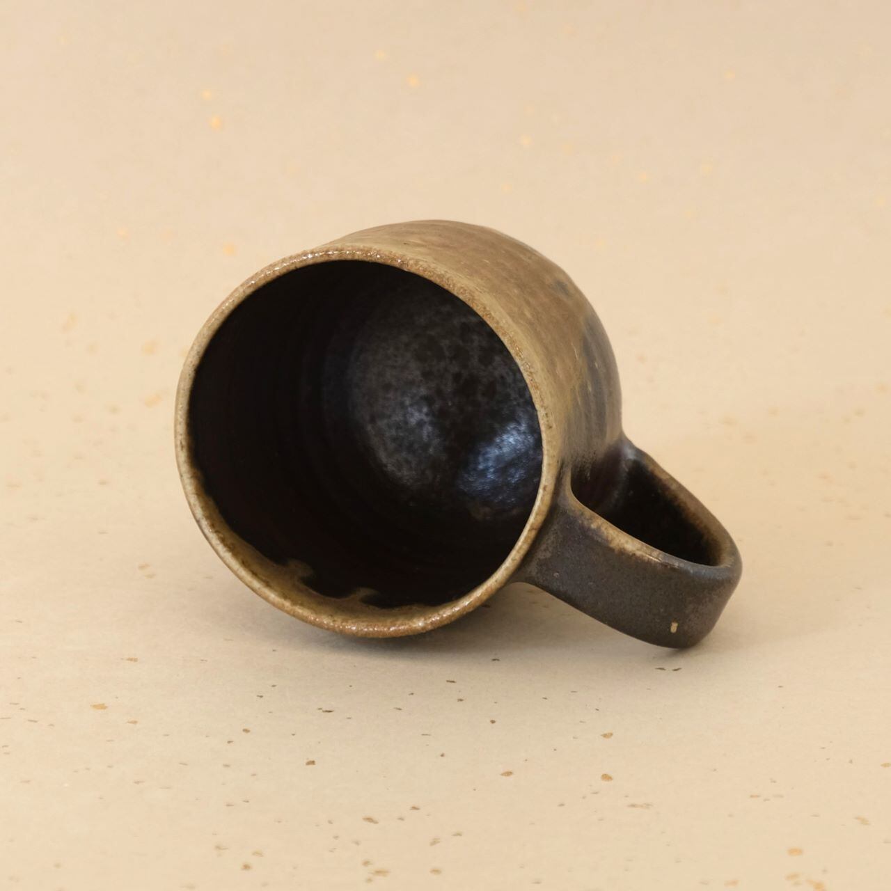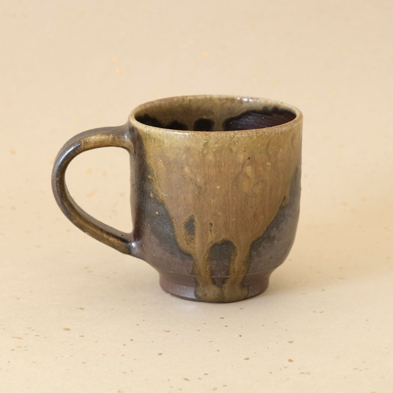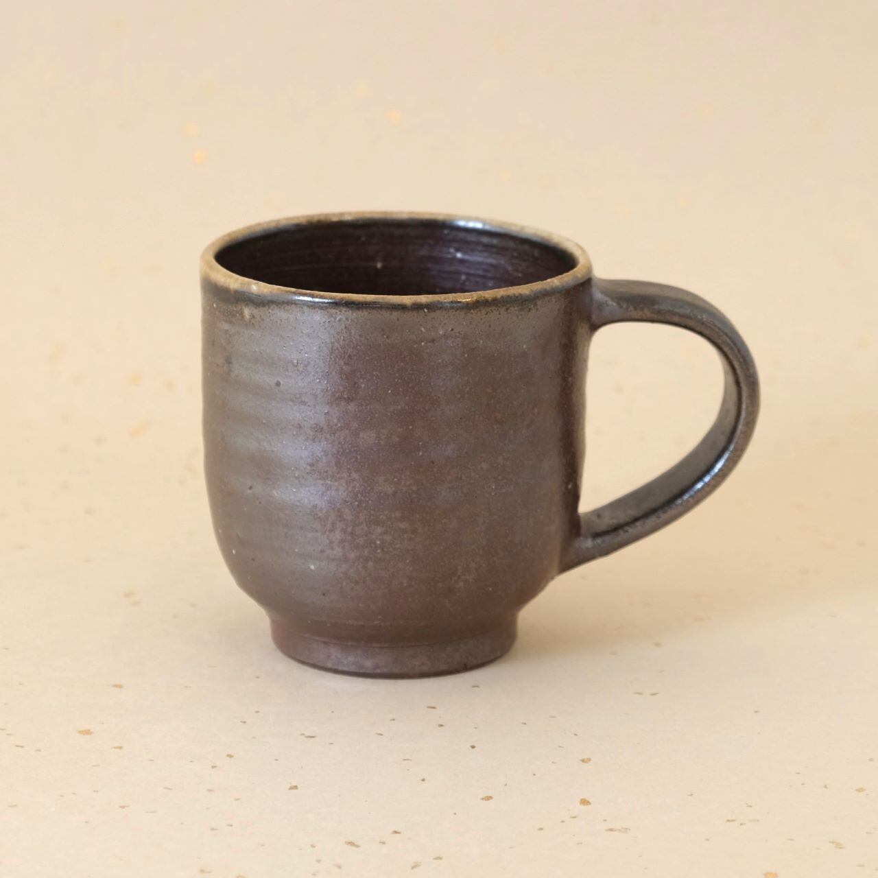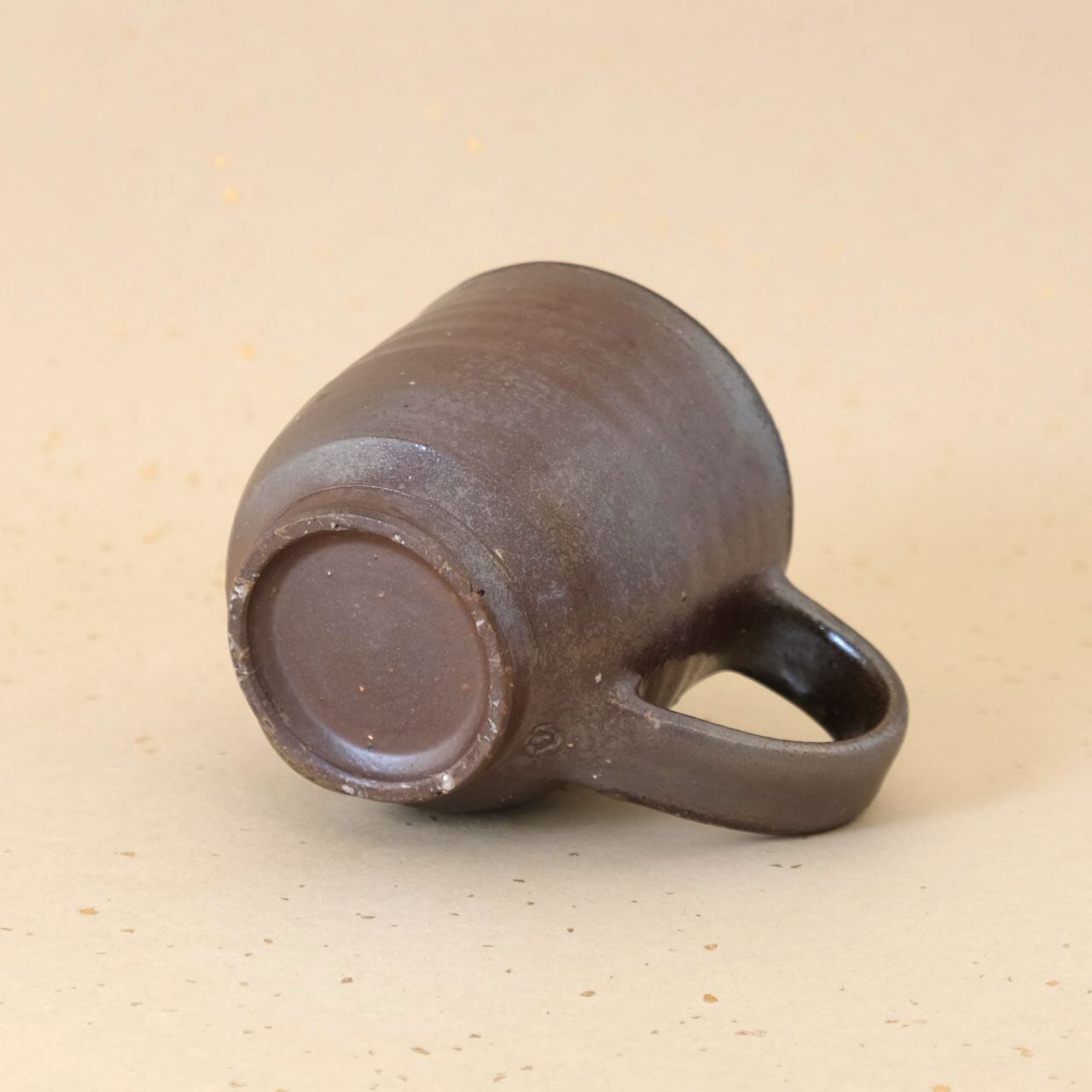 標準サイズのマグです。普段使いとしてもさまざまな用途でご使用いただけます。うつわの側面には、燃料である松割木の灰が溶け、黄味がかった色合いが現れています。