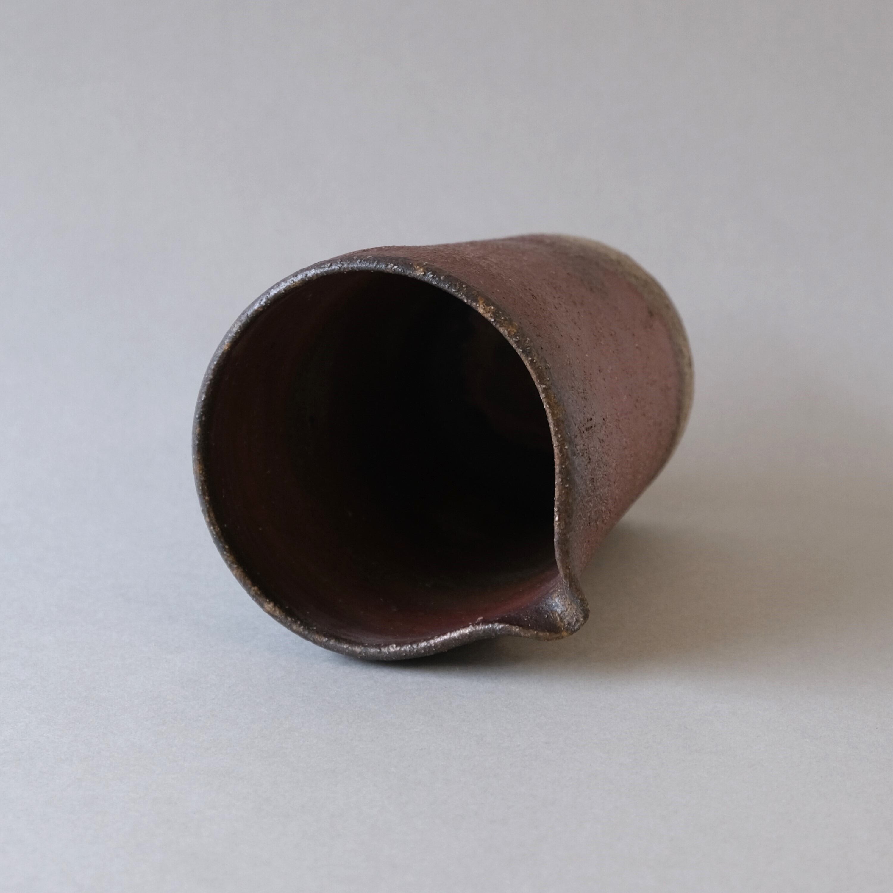お酒などを注ぐ片口です。ドレッシングやつゆ入れなどにも使っていただけます。木炭のガスの影響を受け、青みがかった変化が生まれています。